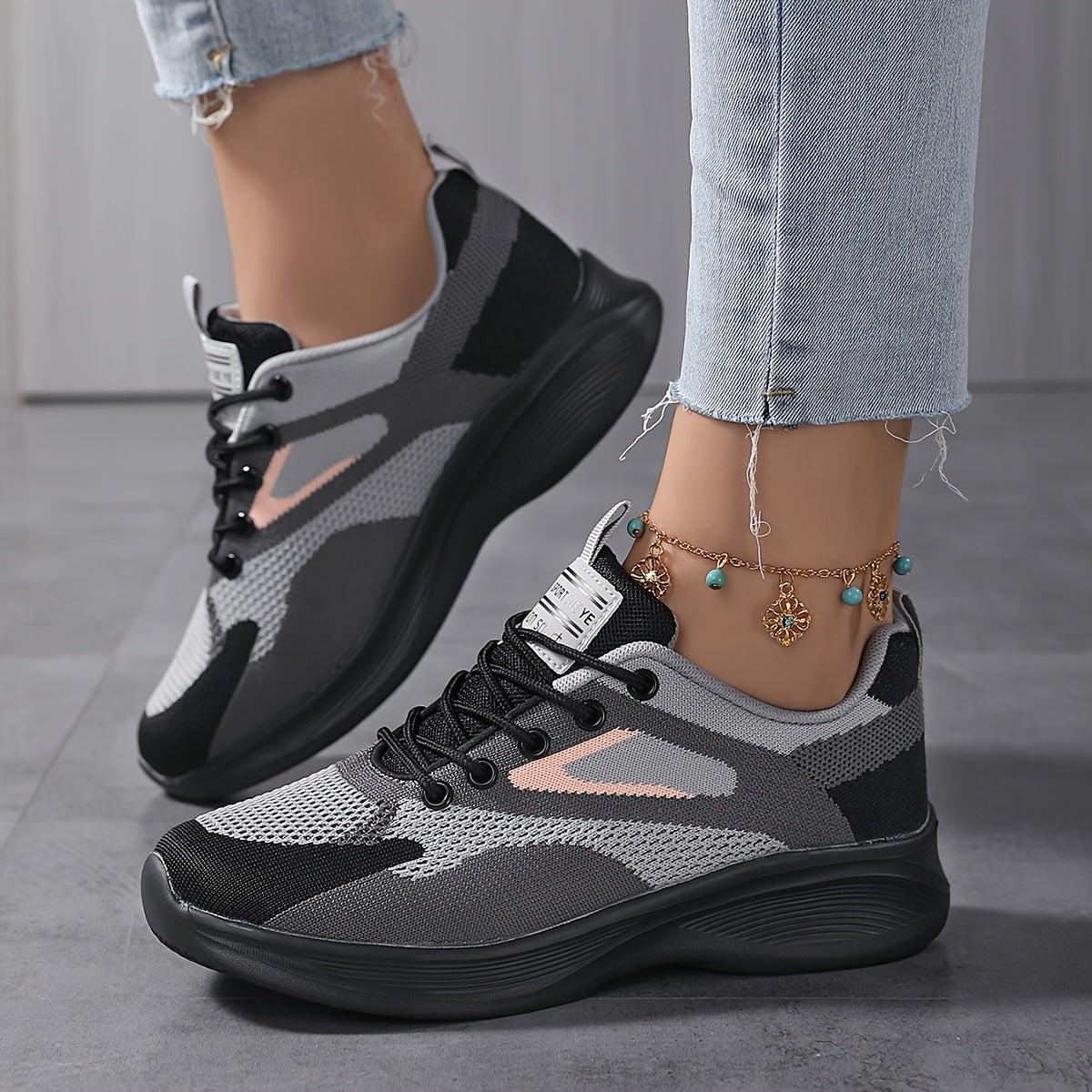 Women'S Breathable Mesh Casual Sneakers - Lightweight Low-Top Lace-Up Shoes with Soft MD Sole, PU Cover Upper & Fabric Lining, All-Season Comfort for Casual Attire, Ladies Sneakers, Comfortable Footwear, Stylish Laceups, Flexible Footwear, Daily Wear, Min