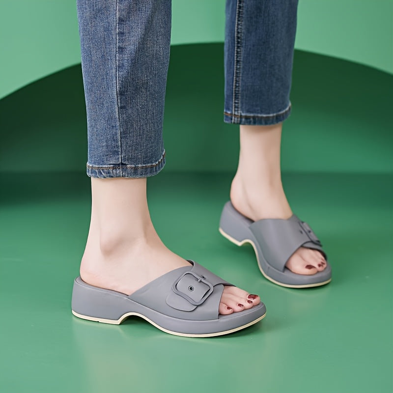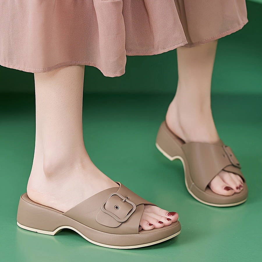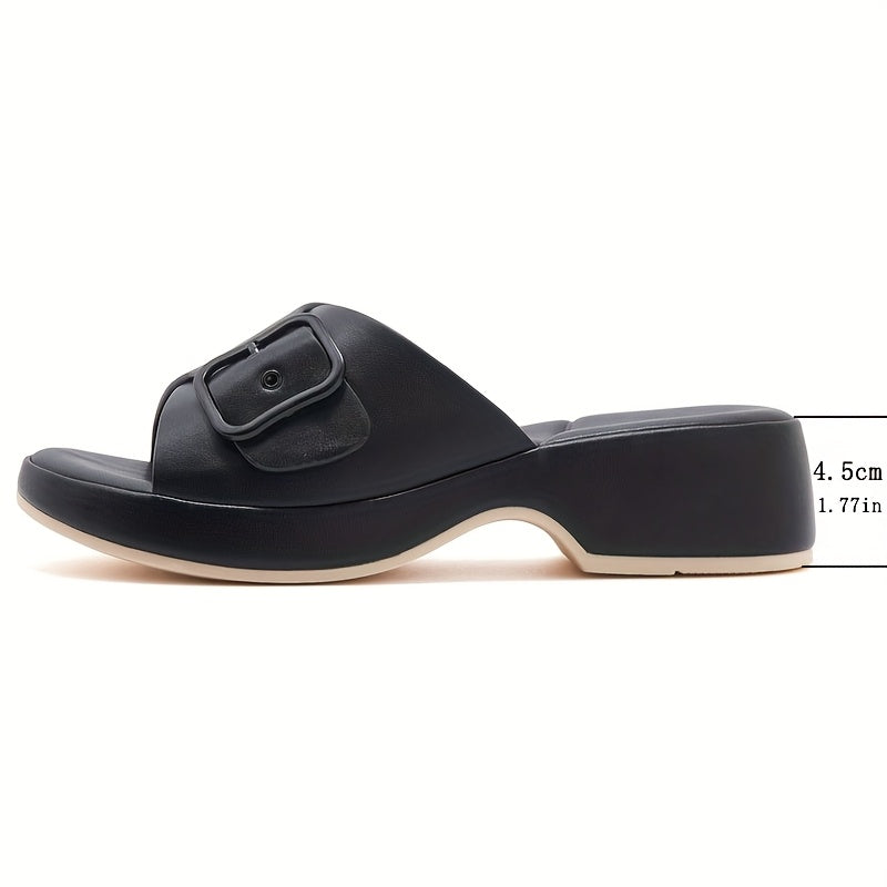 Women's Casual Ankle Strap Slide Sandals with Thick Mid-Heel - Slip-On Open-Toe Summer Shoes in Premium Faux Cover & TPR Sole for Leg-Lengthening Comfort