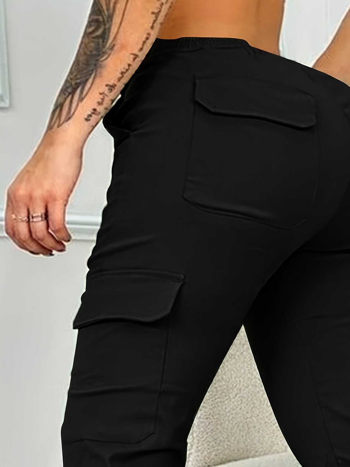 Women'S Casual Cargo Jogger Pants, 100% Polyester, Solid Color, All-Season, Woven Fabric, 150g/m², with Pockets, Perfect for Adult - Olive Green