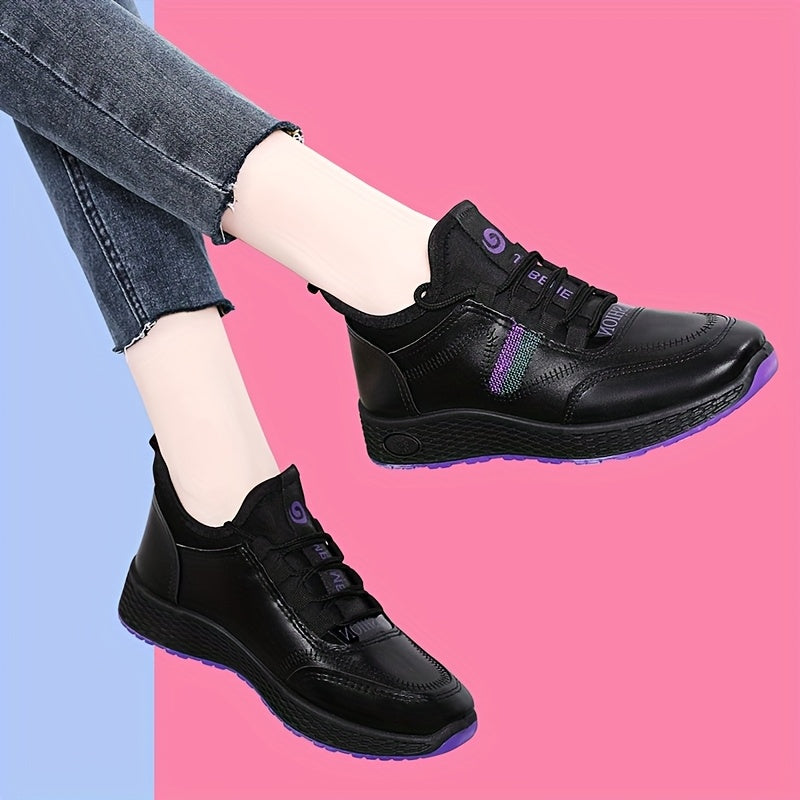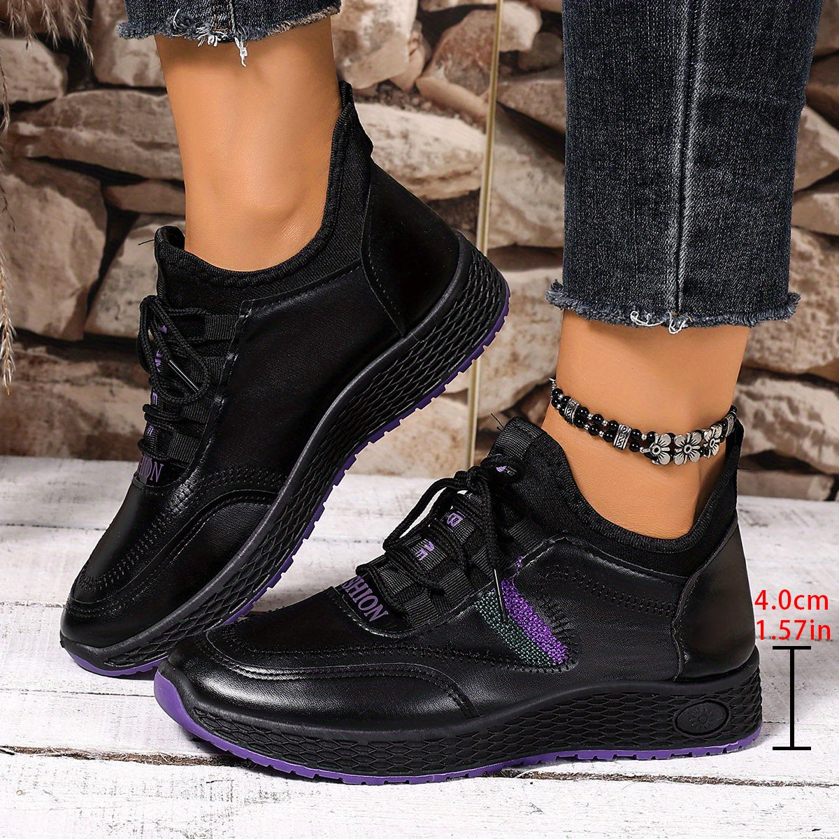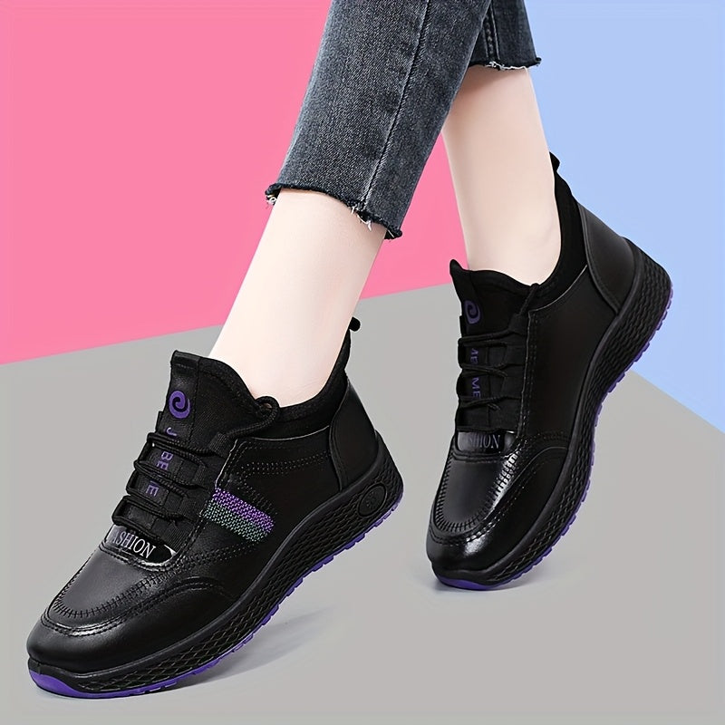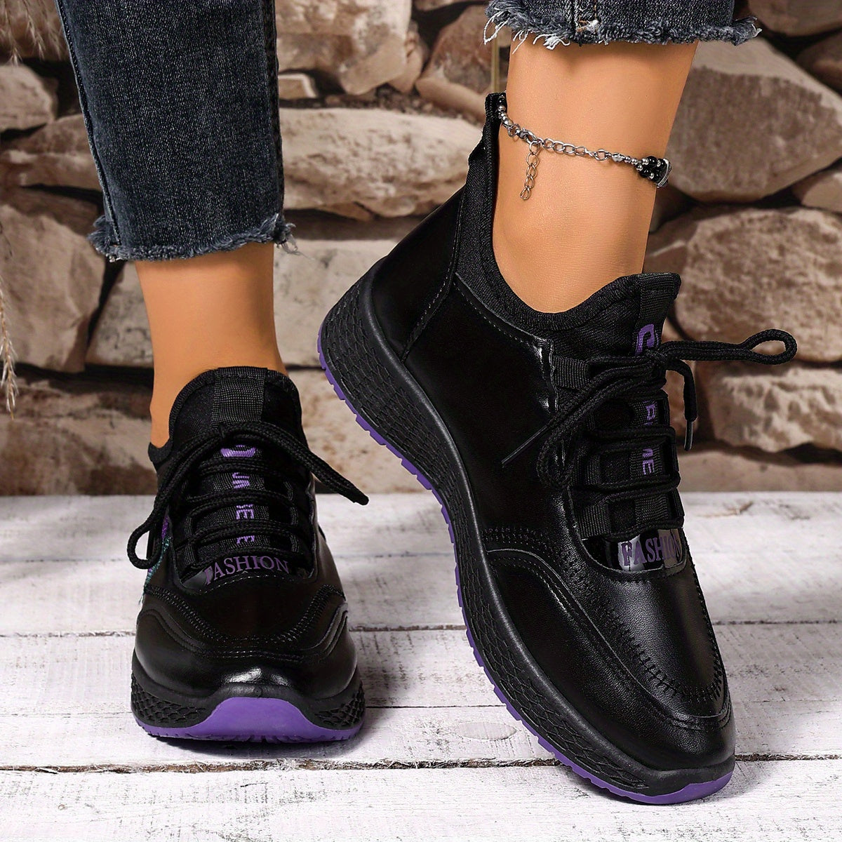 Women'S Casual Sneakers - Black Synthetic Cover Low-Top Lace-Up Shoes with Red Accents, Non-Slip Rubber Sole, Comfortable Fabric Lining for All-Season Wear, Casual Footwear | Stylish Casual Shoes | Durable Rubber Sole