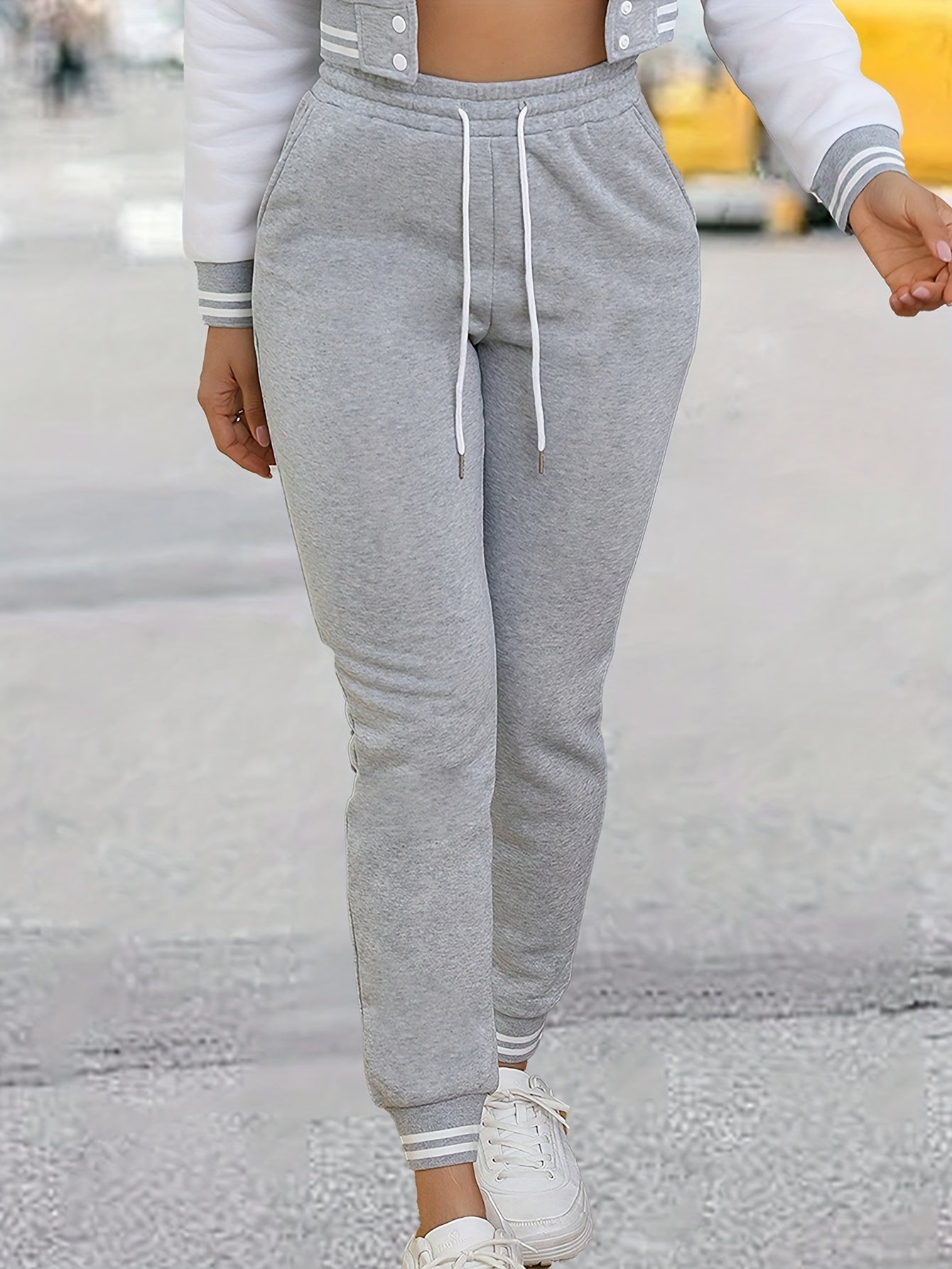 Women'S Casual Solid Color Jogger Pants with Drawstring, Polyester 100% Knit Fabric, 230g/m², Spring/Fall Breathable Sweatpants for Adults