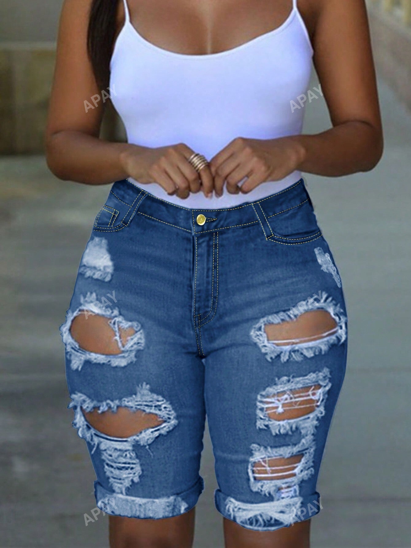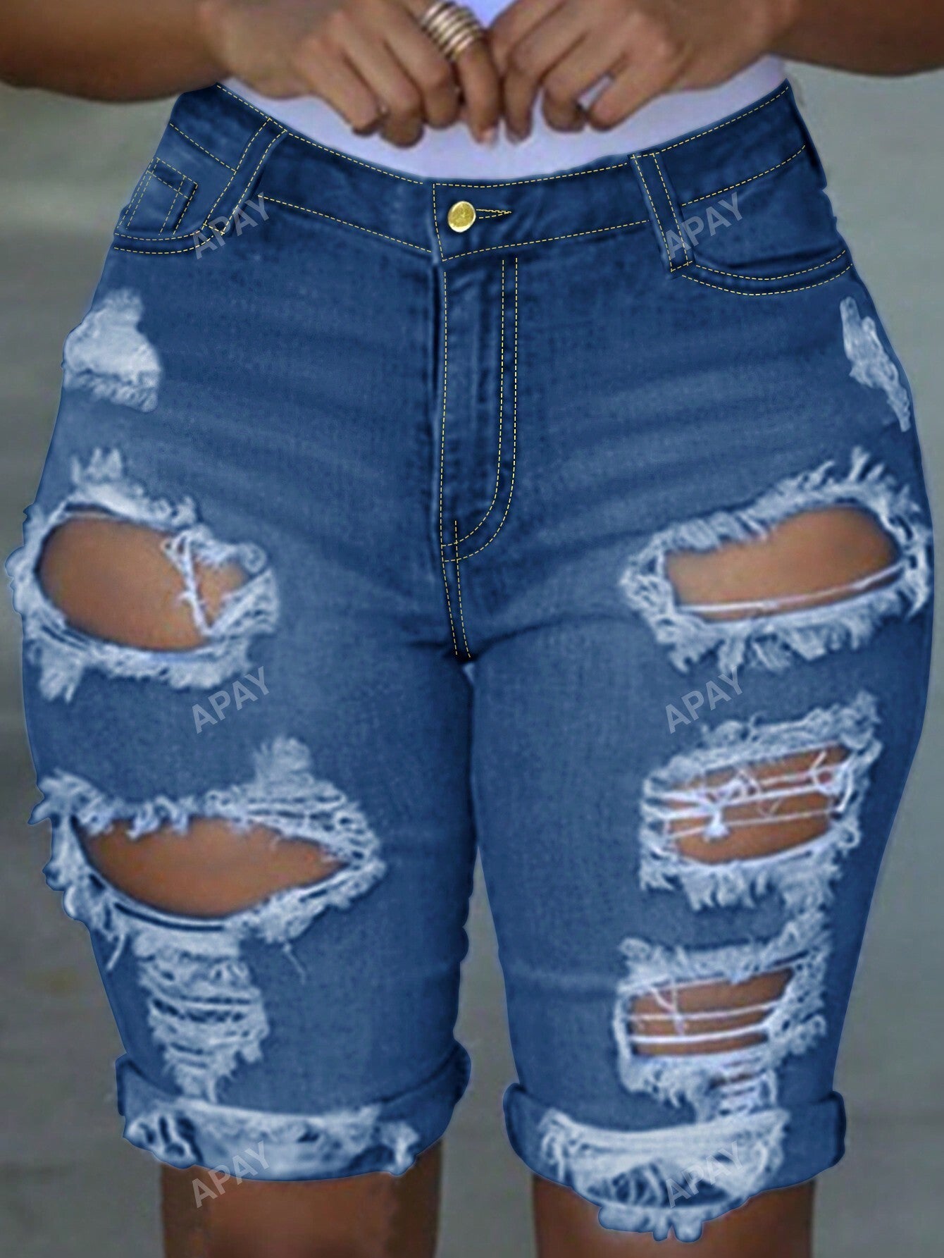 Women's Casual Washed Ripped Denim Shorts