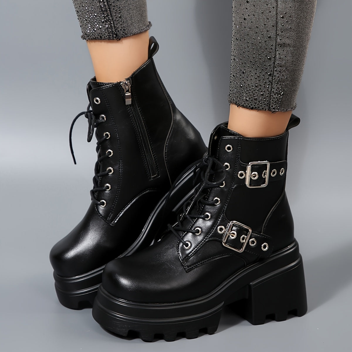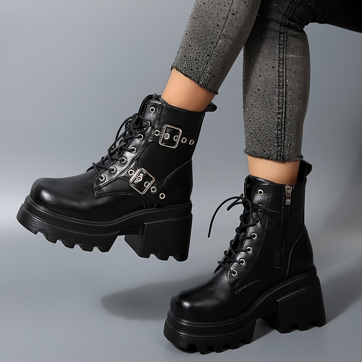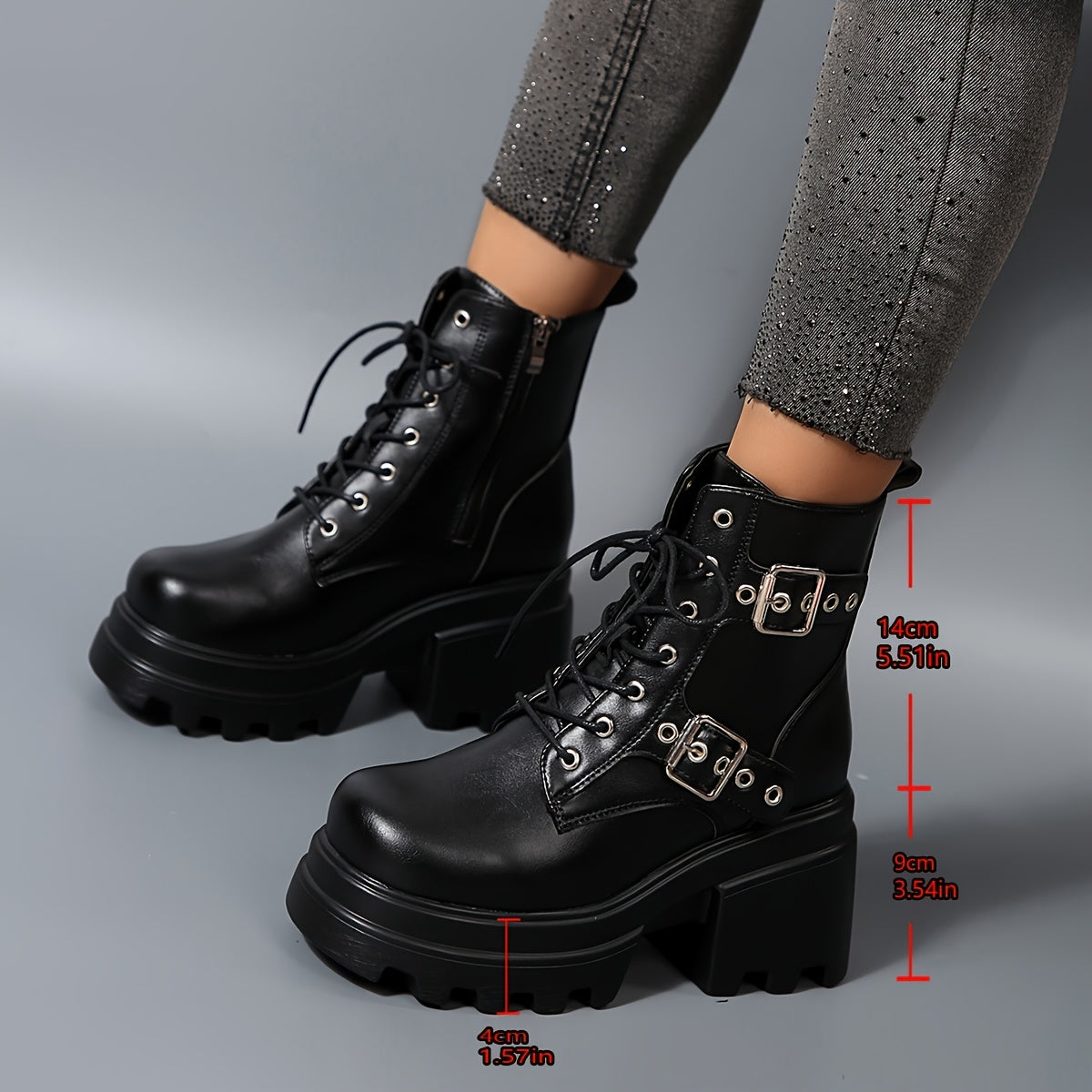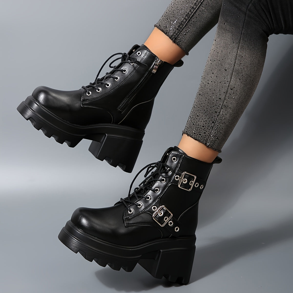 Women's Chunky Platform Boots - Chunky Platform Heels for Height & Stability, PU Synthetic Cover Upper & Slip-Resistant TPR Sole - Everyday & Formal Shoes (Black) - Fall 2025 New Release
