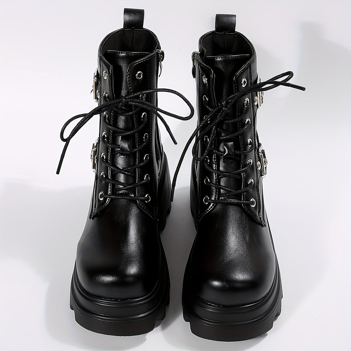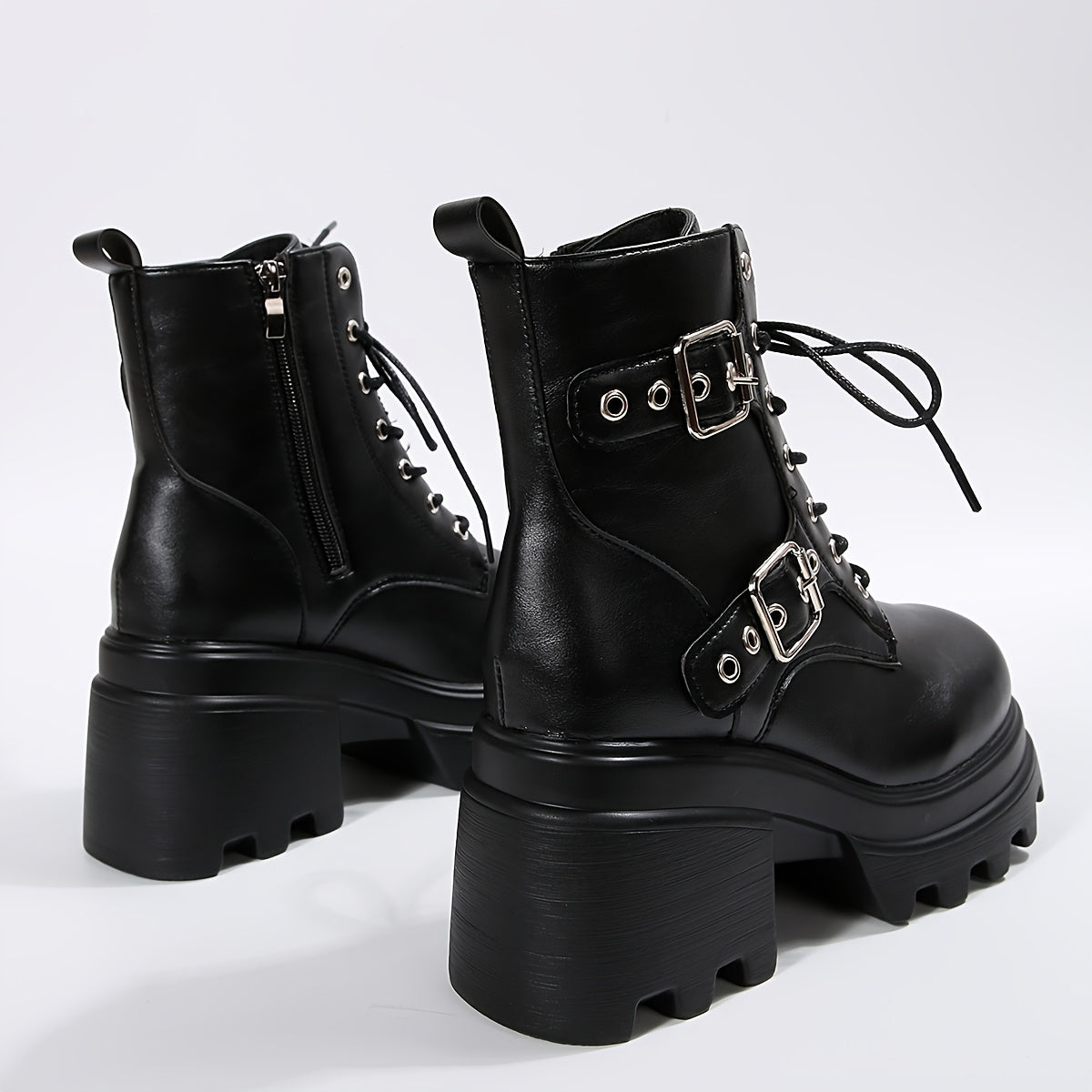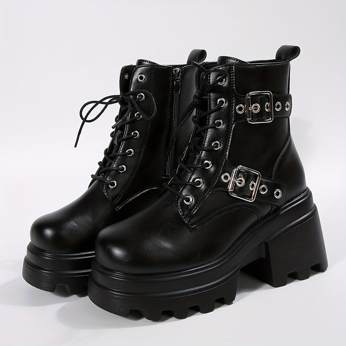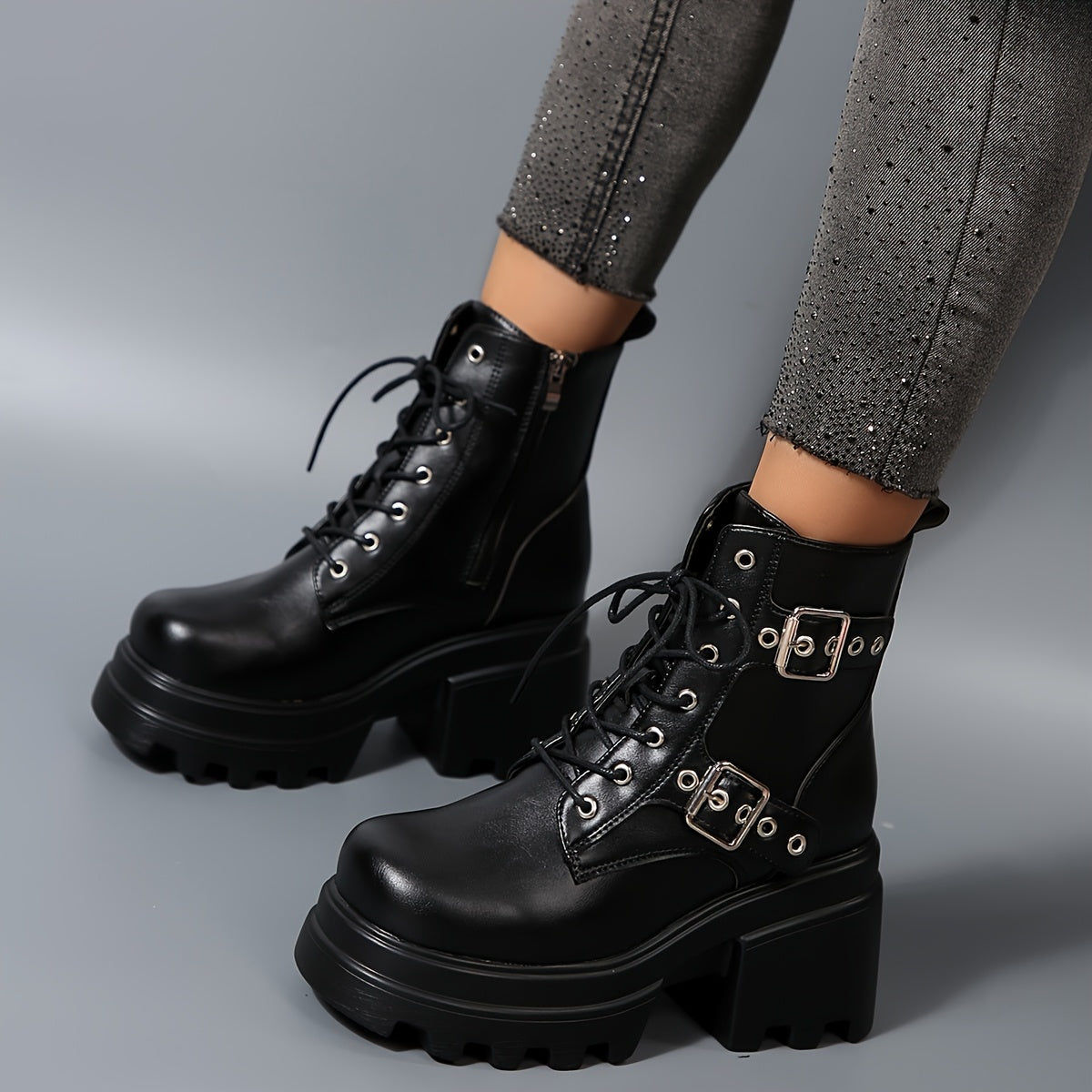 Women's Chunky Platform Boots - Chunky Platform Heels for Height & Stability, PU Synthetic Cover Upper & Slip-Resistant TPR Sole - Everyday & Formal Shoes (Black) - Fall 2025 New Release