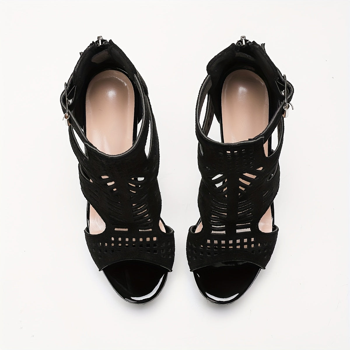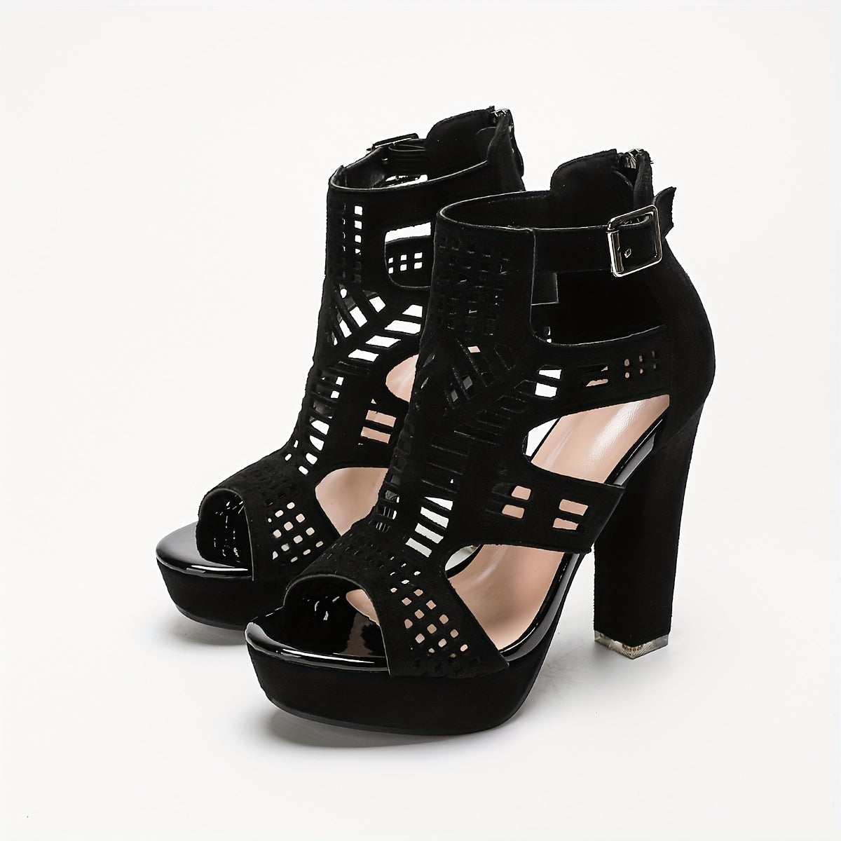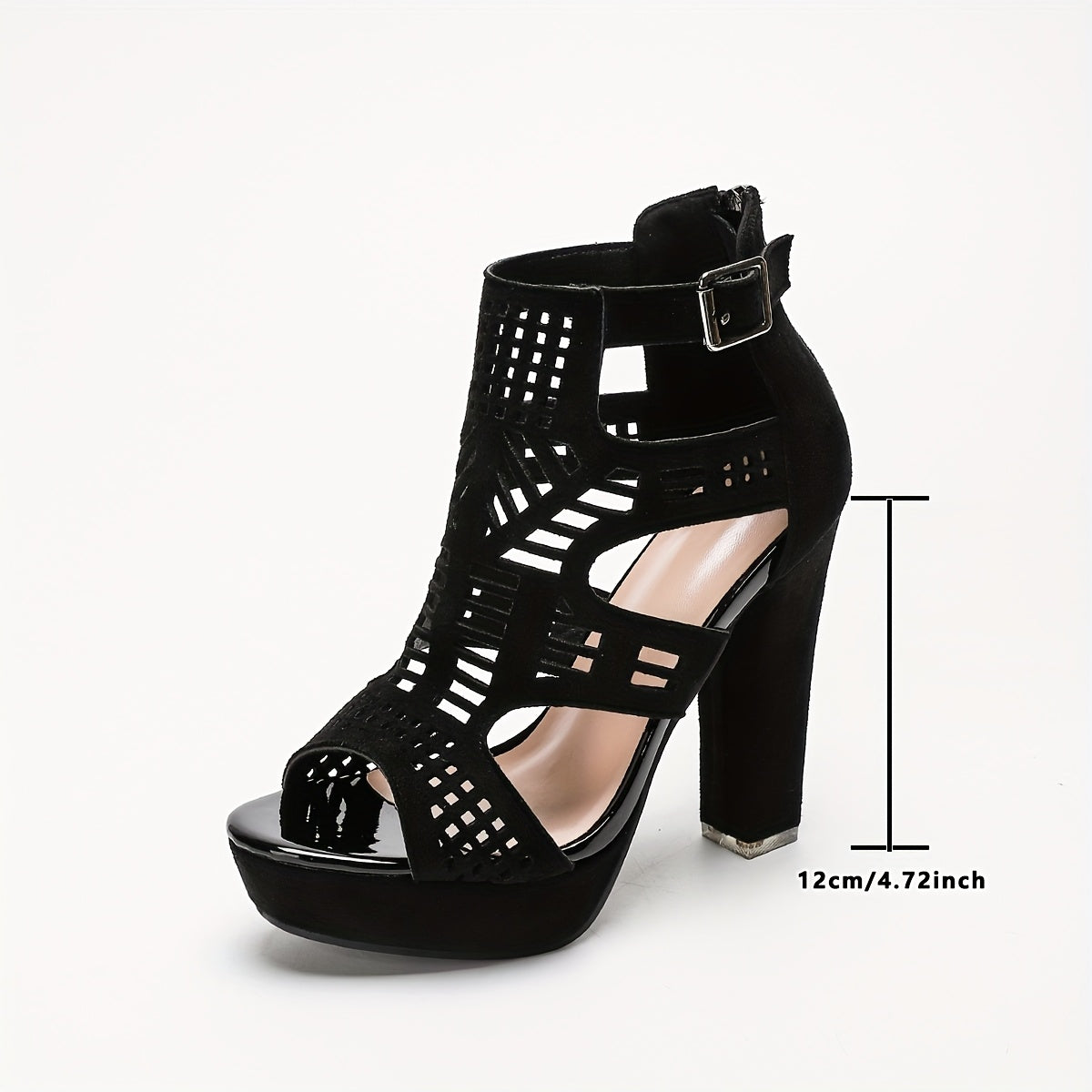 Women's Chunky Platform High Heels - Open Toe, Slip-Resistant TPR Sole, Black Party Shoes for Formal Events, Night Out, Everyday - All-Day Comfort & Stability