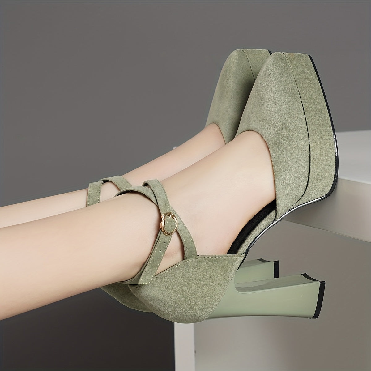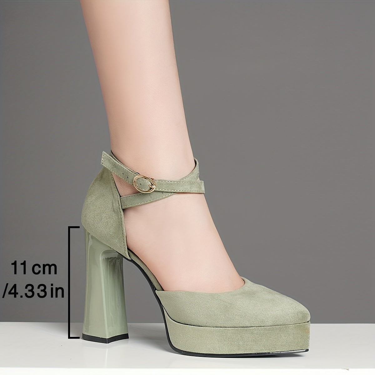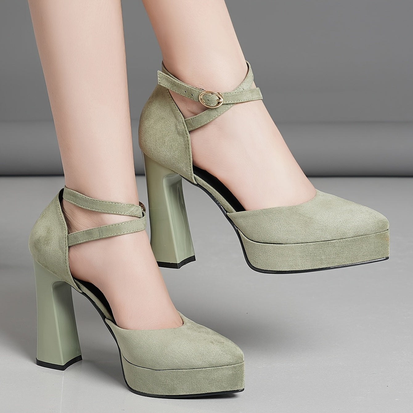 Women'S Comfortable Block Heel Pumps - Mint Green Pointed Toe Summer Dress Shoes with Ankle Strap, Ultra-High Heel, Block Heel, Synthetic Cover & Rubber Sole for Casual & Formal Occasions, High Heel Shoes, Formal Footwear, Elegant Shoe Design, Durable Tra