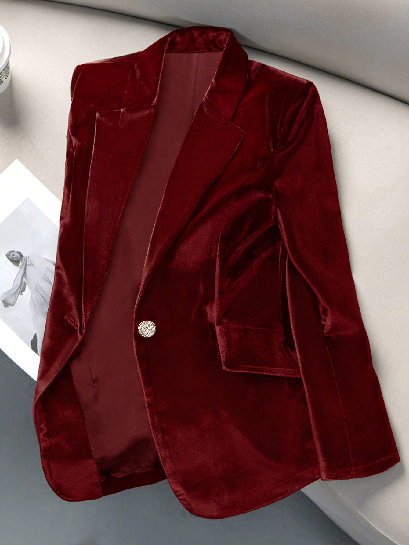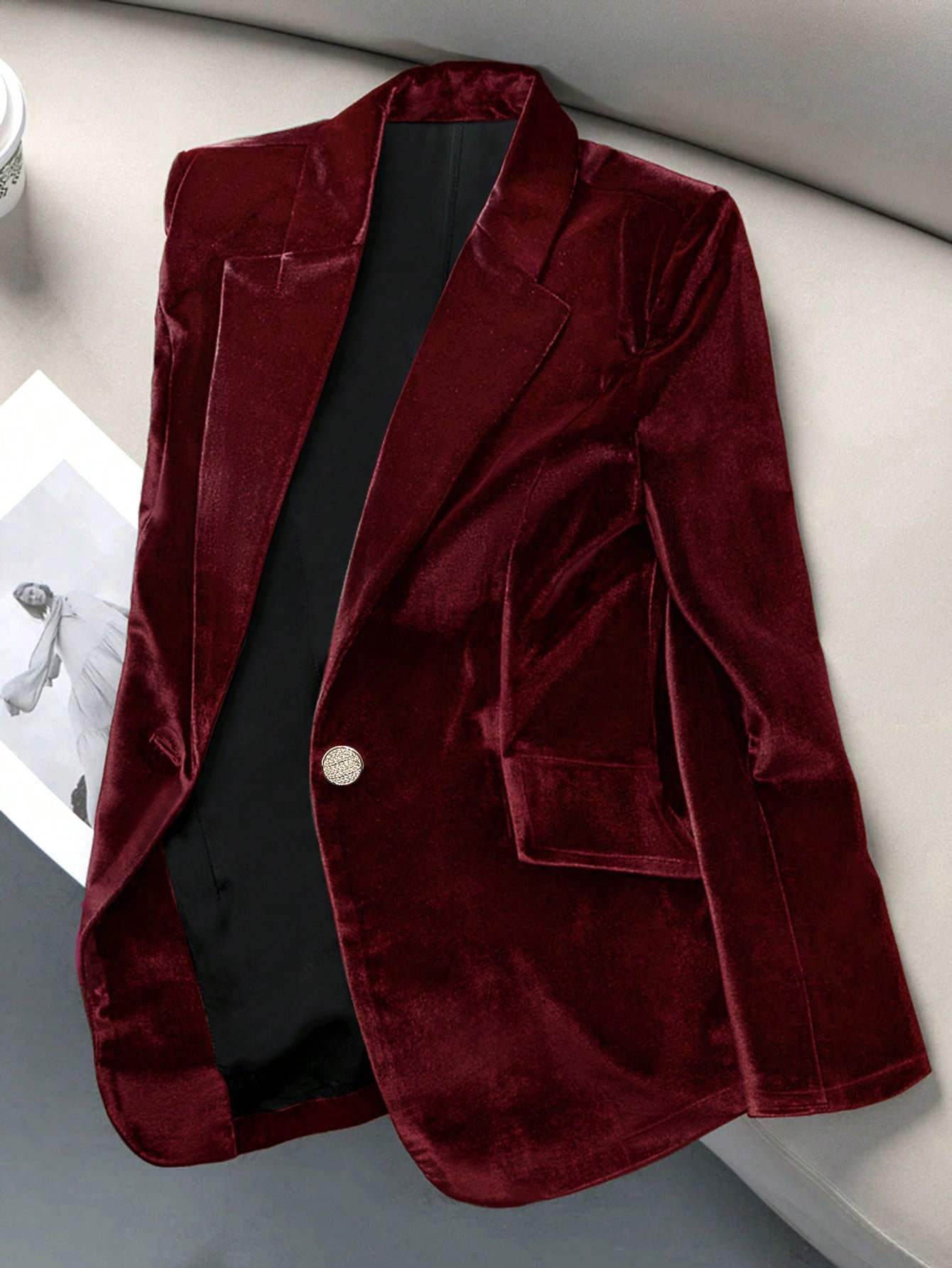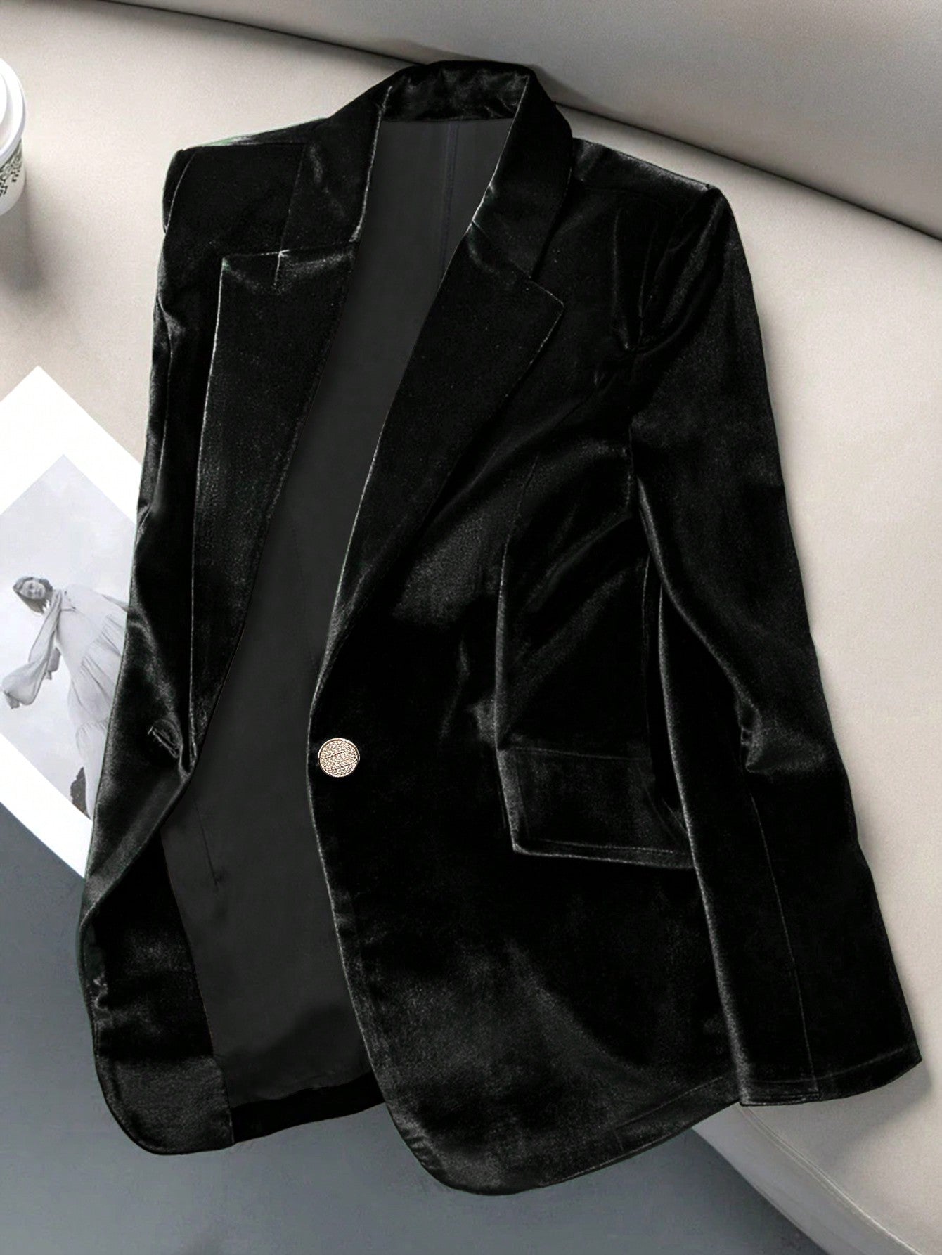Women's Elegant Casual Velvet Single-Button Long Sleeve Blazer Jacket