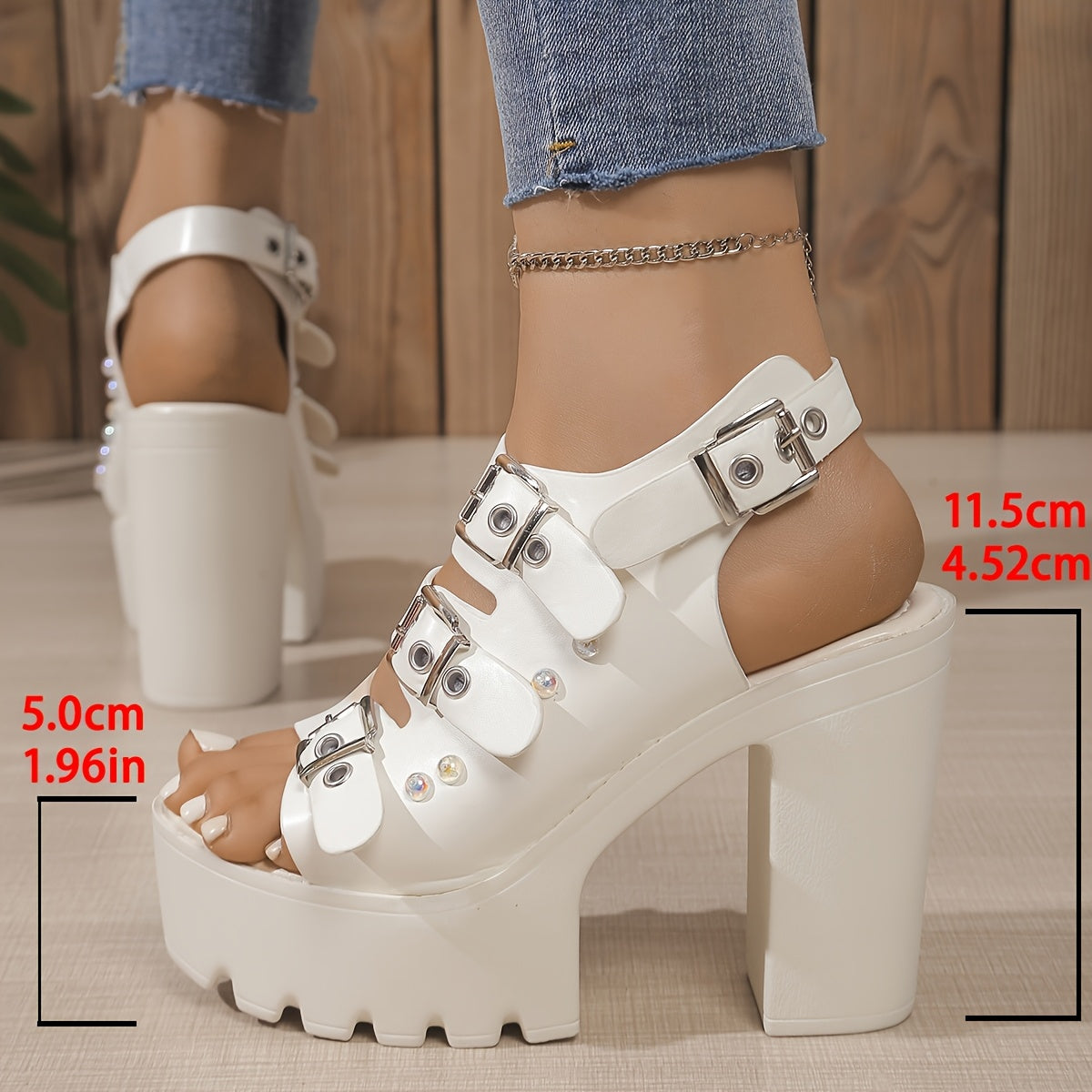 Women'S Elegant Fashion High-Heel Sandals with Buckle Strap, Platform, Open Toe, Block Heel, Synthetic Upper & Insole, PU Sole - Versatile All-Season Footwear