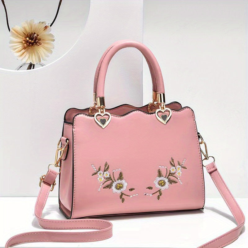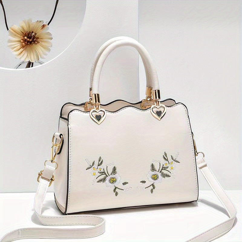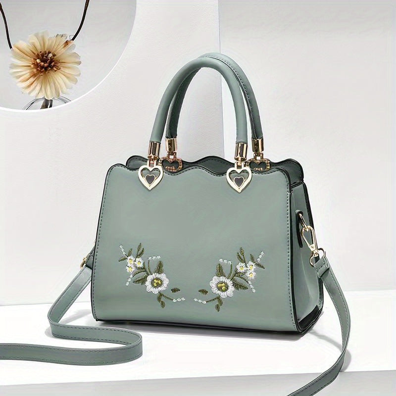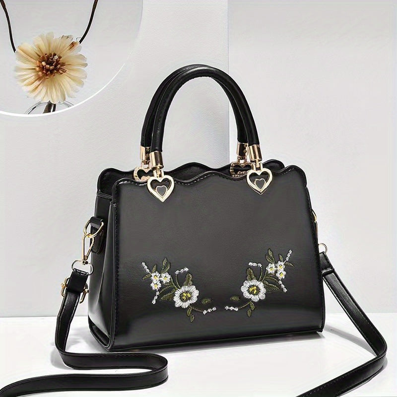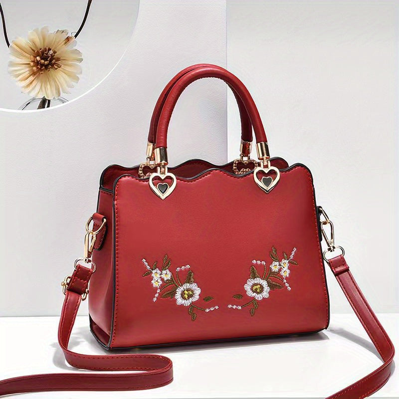 Women's Elegant Large Capacity Crossbody Bag - Floral Daisy handbag with Snap Closure, Purse with Adjustable Strap, for Everyday, Formal, Special Events - Available in Red, Green, Black - Luxury Mom Purse