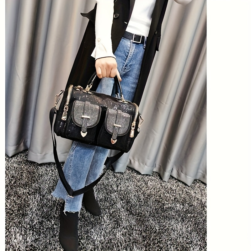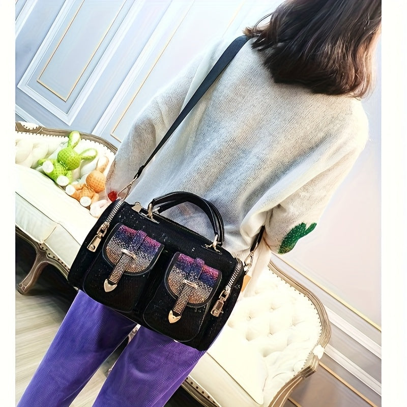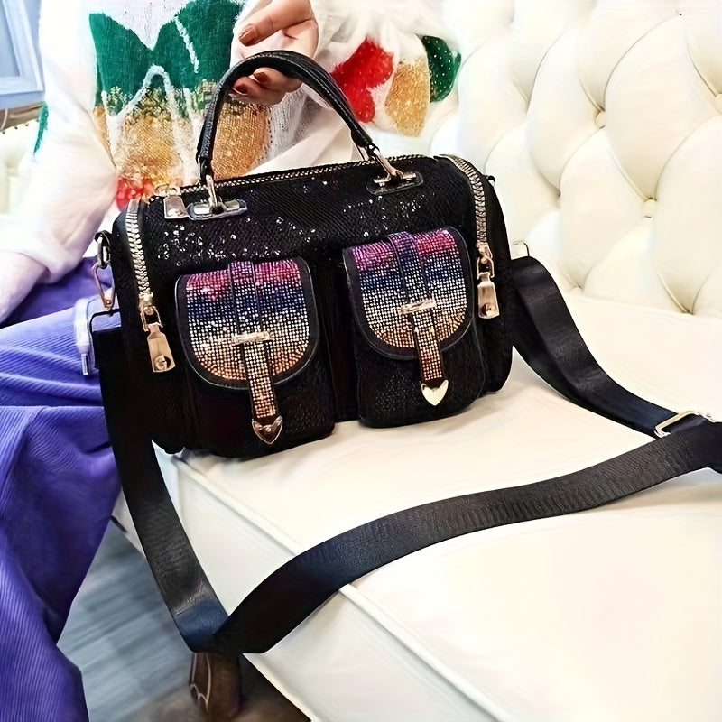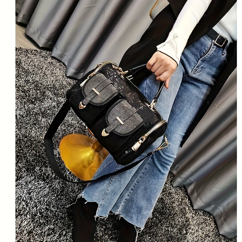 Women's Elegant Large Capacity Crossbody Bag with Detachable Strap - Glamorous Evening Purse, Zipper Closure, Synthetic Material - for Parties, Office, Everyday Use - Available in Black & Pastel Colors (Handbag for Women), Crossbody Purse