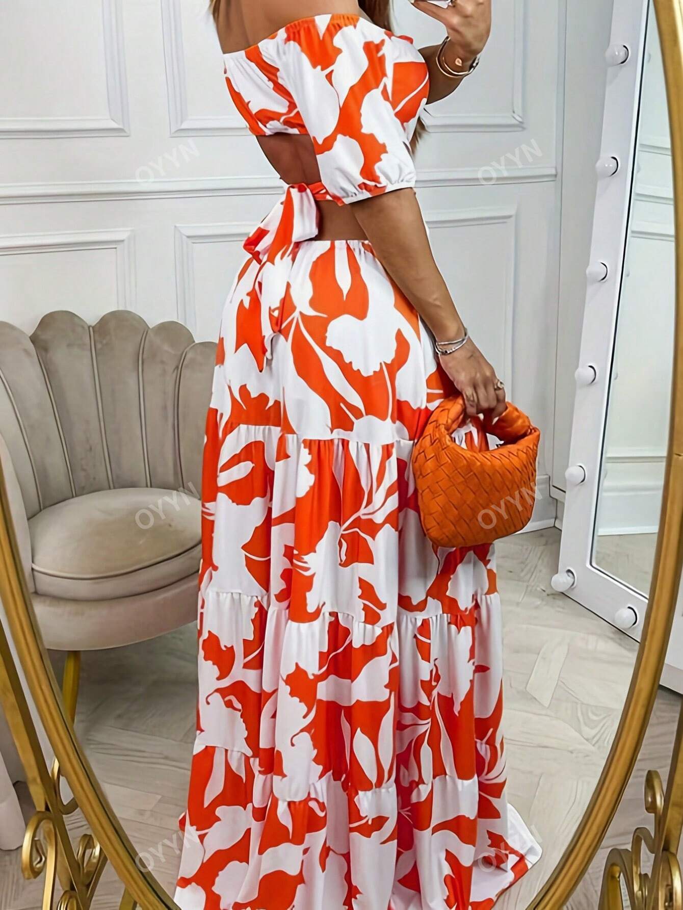 Women's Elegant Off Shoulder High Waist Flared Dress With Graphic Prints, Stylish Club Wear For Summer