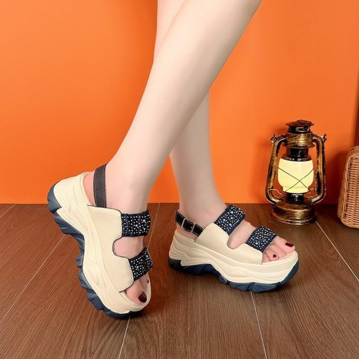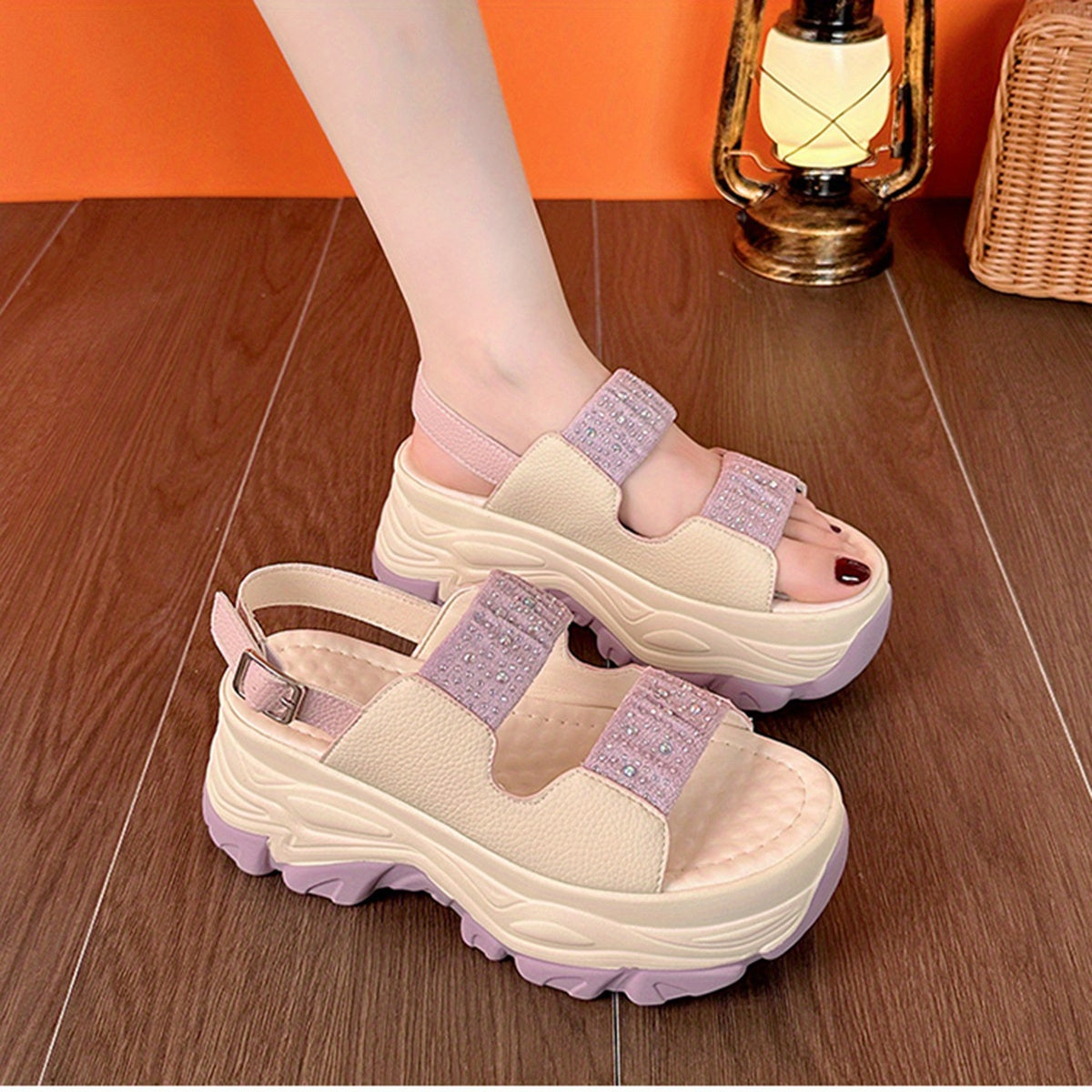 Women's Elegant Rhinestone Platform Sandals - Open Toe, Ankle Strap, Thick Sole, Faux Cover Summer Shoes for Casual & Festive Wear