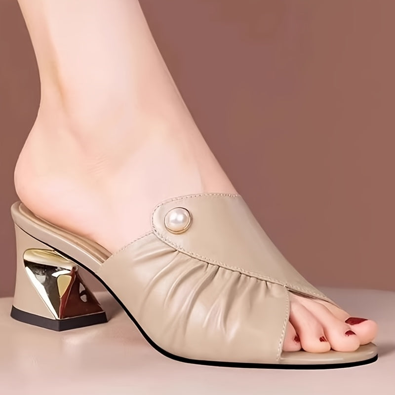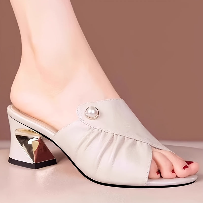 Women's Elegant Synthetic Cover Open-Toe High Heel Sandals with & Metal Accents - Slip-On Summer Dress Shoes in Black, White, Beige, Chic Sandals | Slipon Heels | Comfortable Fit