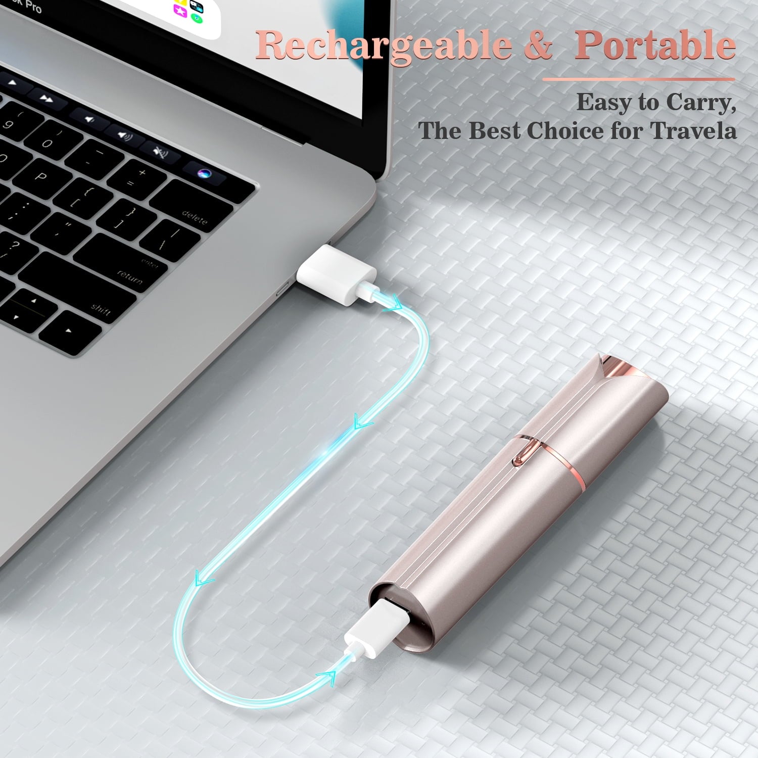 Women's Facial Hair Removal Depilator, Rechargeable Electric Shaver with LED Light for Upper Lip, Chin, and Mustache, Portable and Stylish Grooming Tool, Champagne Gold