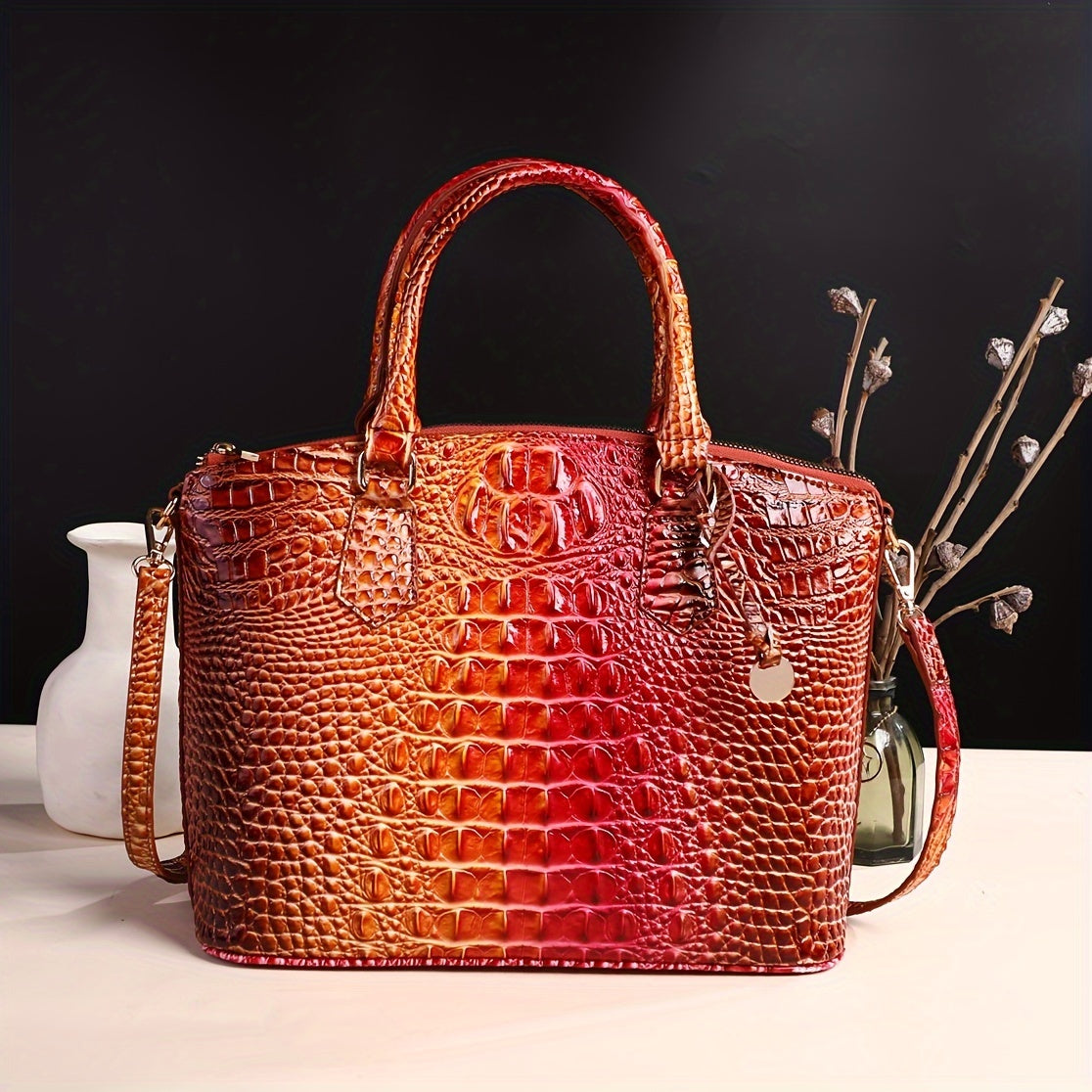 Women's fashion high-end handbag cross-body women's bag color crocodile pattern handbag women's work handbag cross-body bag