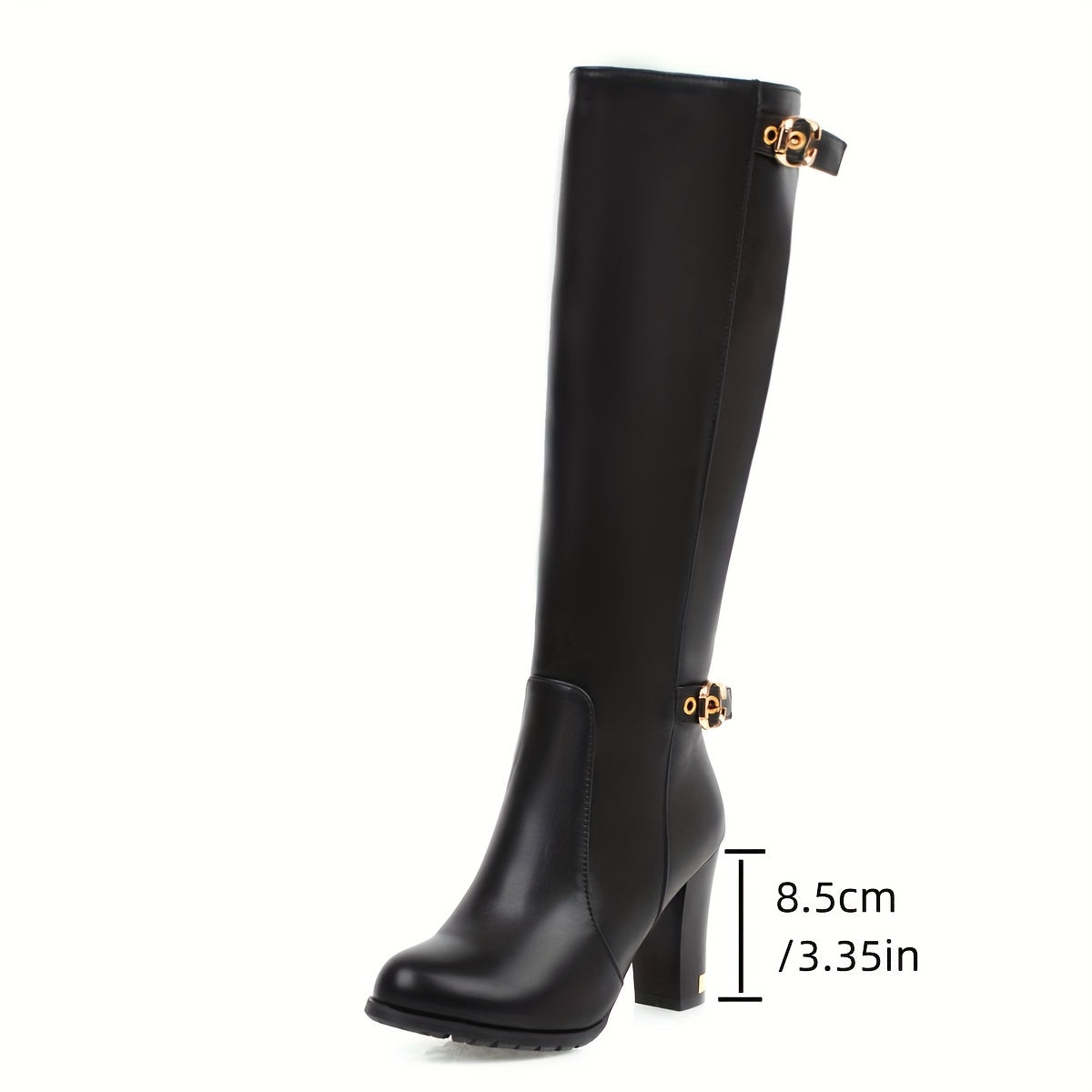 Women'S Fashion Over-the-Knee Boots, Solid Color, Comfortable Dress Style with Block Heel, Zipper Closure, Round Toe, Rubber Sole, Fabric Inner & Insole, All-Season Winter Footwear