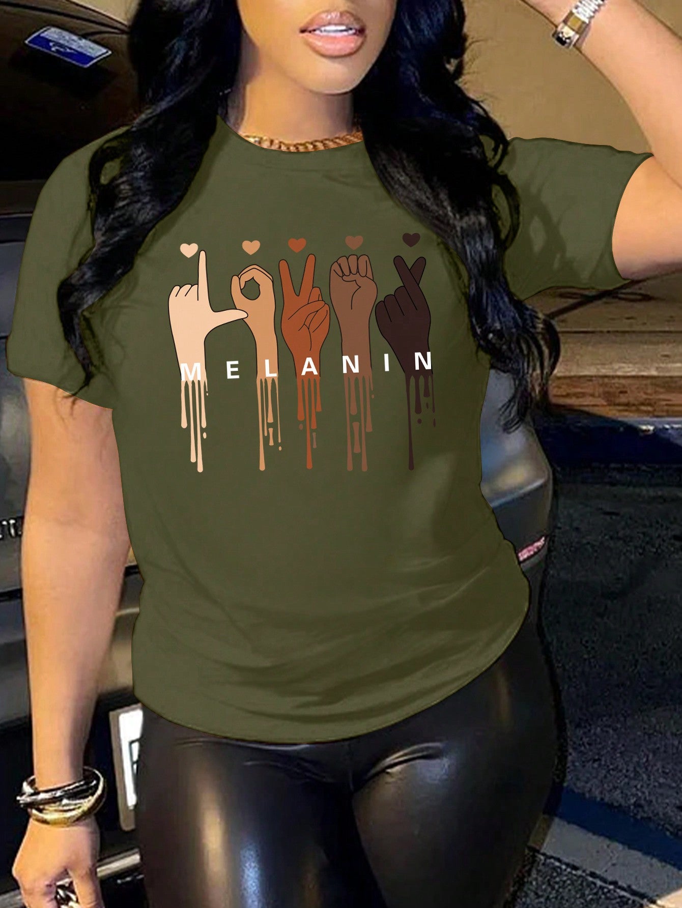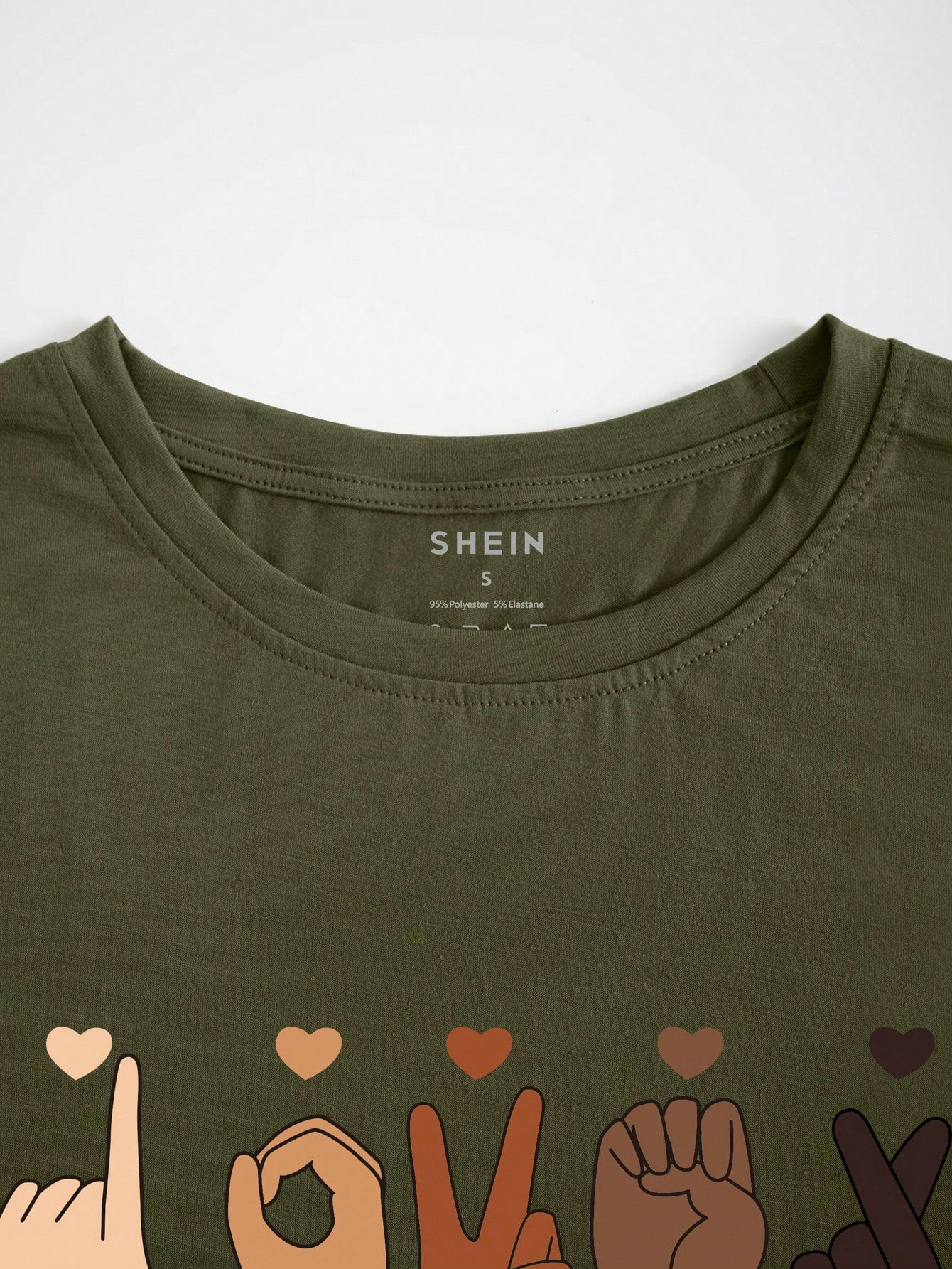 Women's Gesture Printed Short-Sleeve T-Shirt Graphic Tees Women Tops