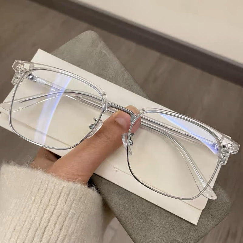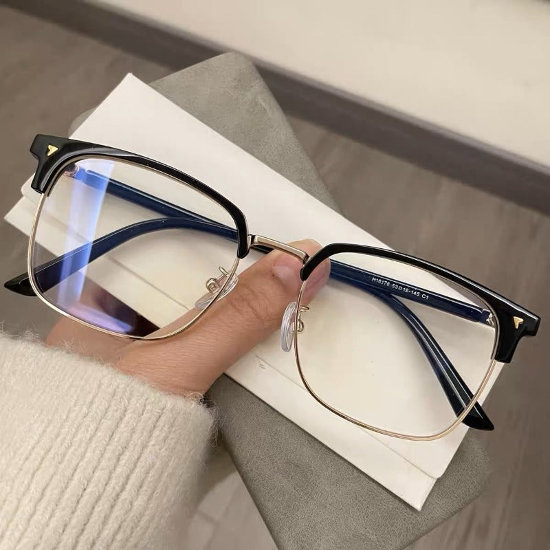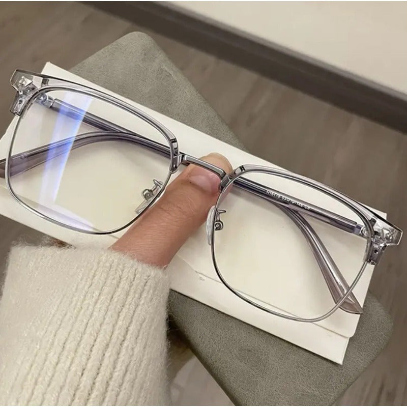 Women's Half Frame Glasses - Anti-Blue Light Computer/Eye Protection Glasses, Ultra-Thin Frame, Lightweight Eyewear for Office, Reading, - Elegant Round Lens Non-Prescription Glasses, Social Gathering Eyewear, Minimalist Eyeglasses, Sturdy Temple Design,
