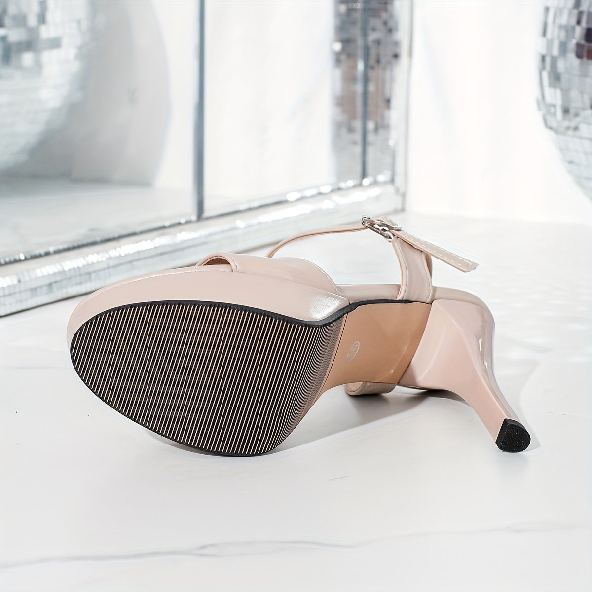 Women'S High Heel Sandals with Ankle Strap & Buckle Closure - Open Toe Stiletto Heels, Microfiber Cover Upper & Rubber Sole, Minimalist Design for Weddings, Parties, Formal Events, High Heel Sandals, Wedding Guest Shoes, Sleek Shoe Design, Durable Tractio