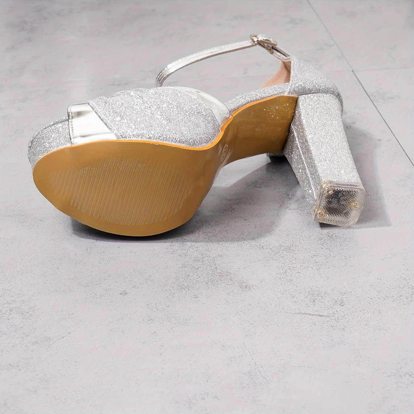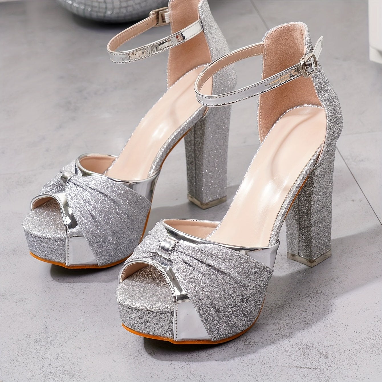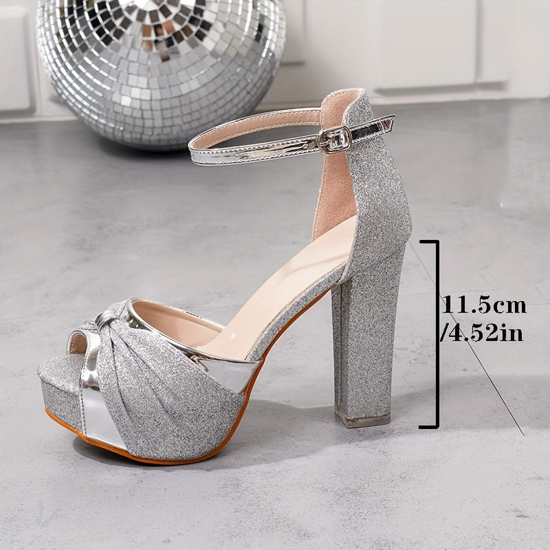 Women's High Heels with Asymmetrical Sole High Quality Platform High-End Elegant Fashionable Bright Silvery Shoes