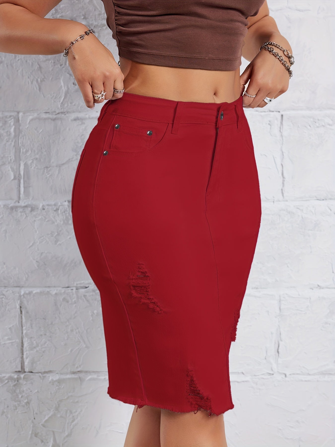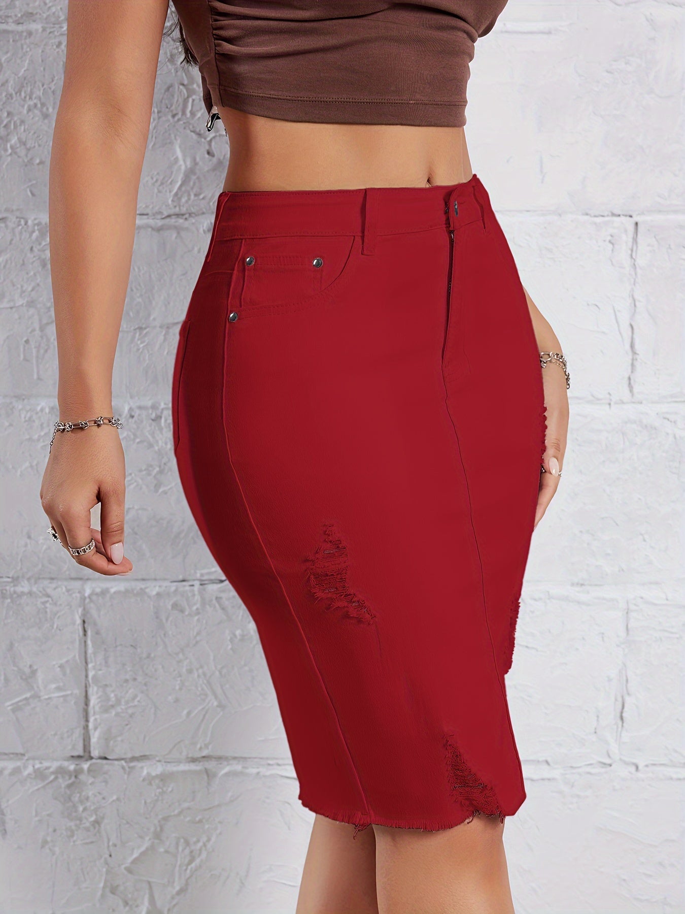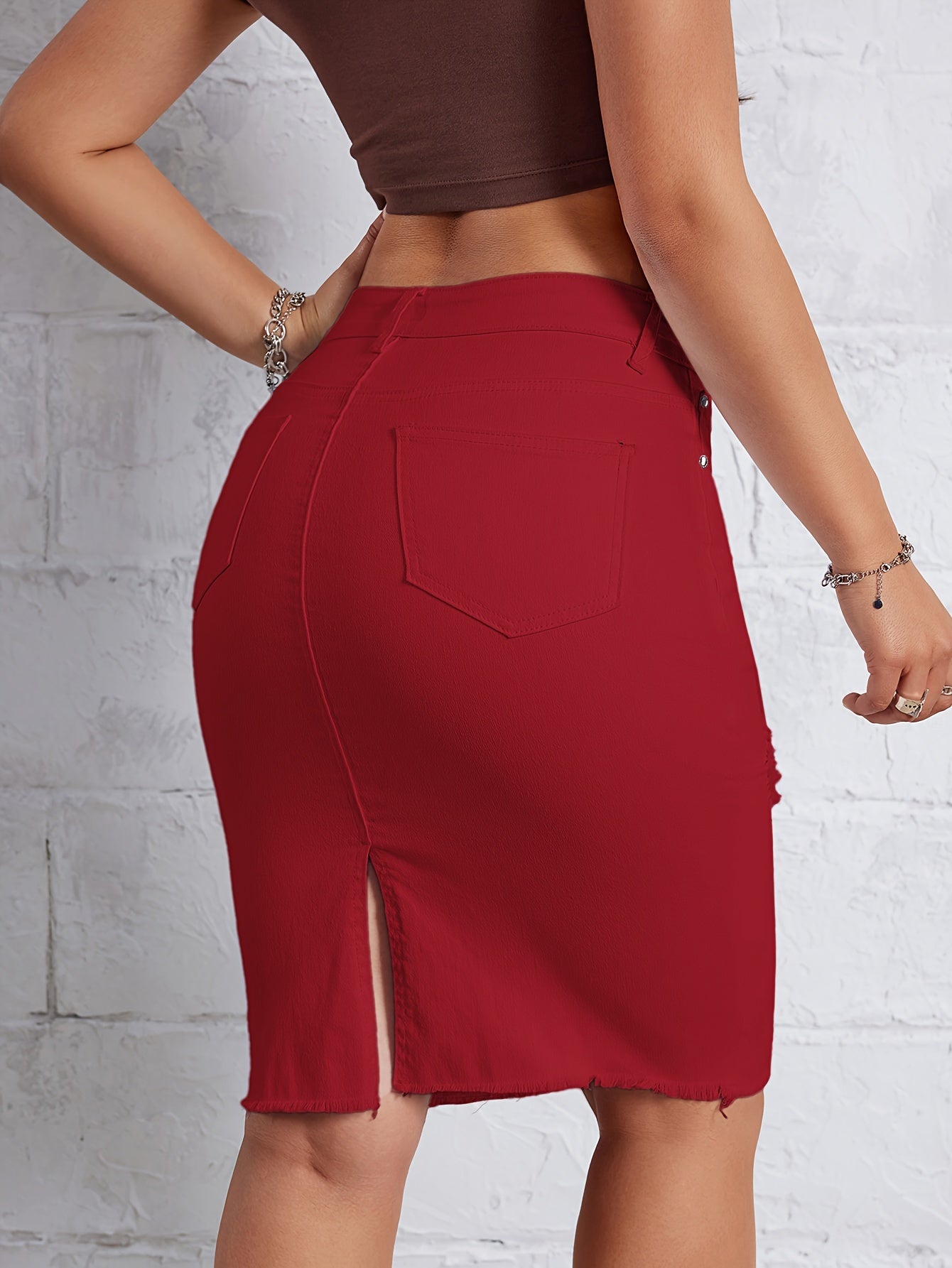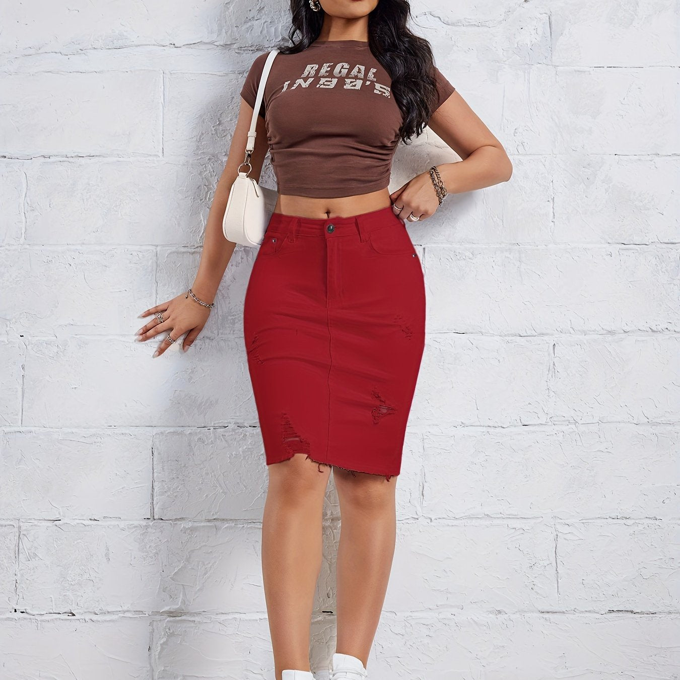 Women's High-Waist Slimming Bodycon Skirt - Vibrant Yellow, Stretchy Fabric with Distressed Detailing and Raw Hem, Perfect for Spring/Summer/Fall, Versatile Wear|Trendy Bodycon Skirt|Highwaist Style