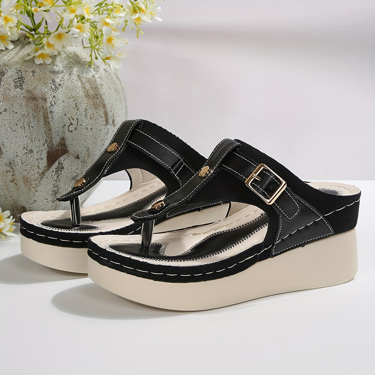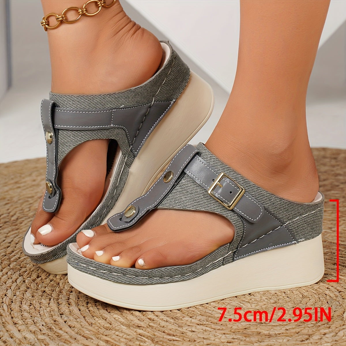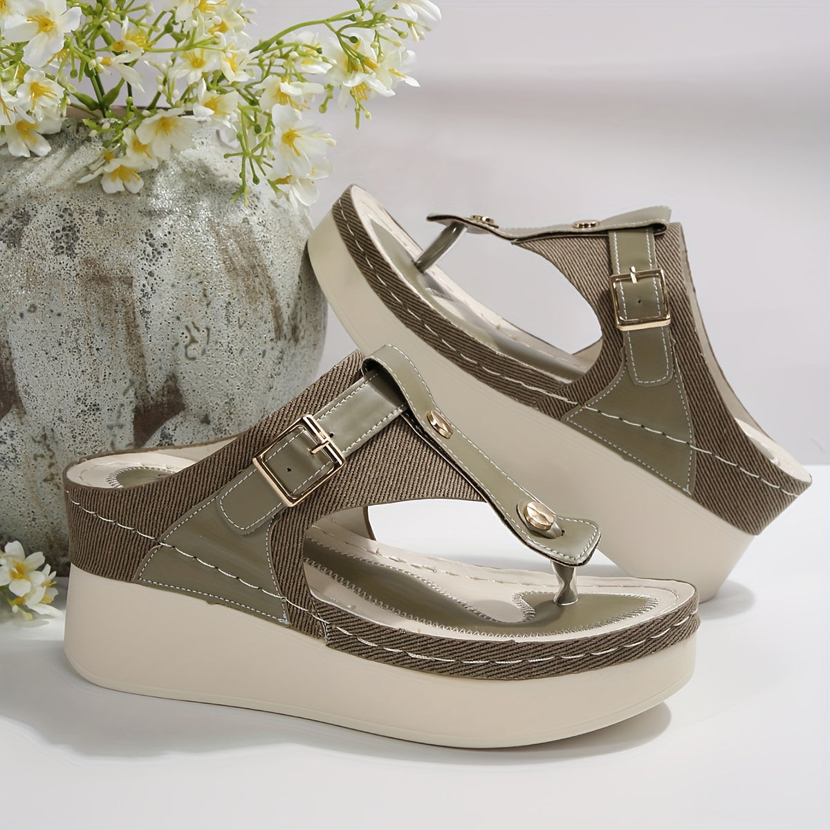 Women's High Wedge Sandals - Split-Toe Slip-On with Adjustable Buckle Strap, Soft Fabric Upper & Durable PU Sole, All-Season Casual Beach Shoes for Outdoor, Office, or Casual Attire, Strappy Sandals, Crisscross Strap Design, Synthetic Cover Insole