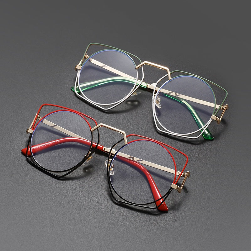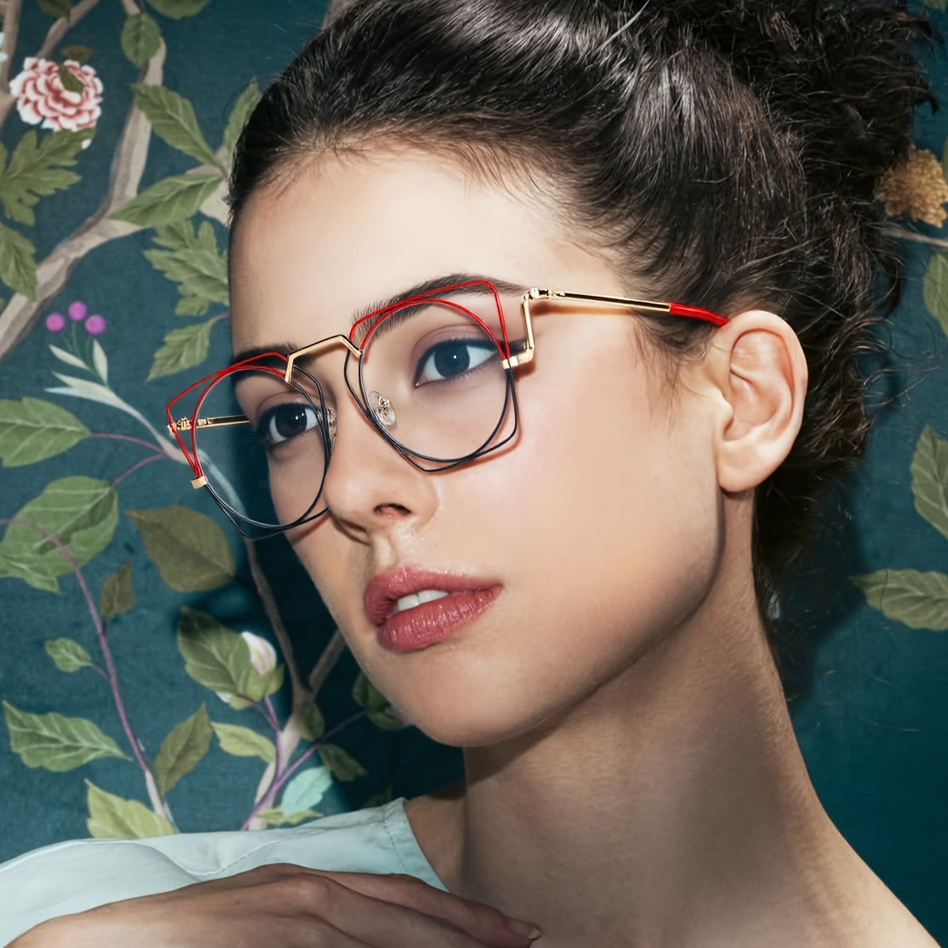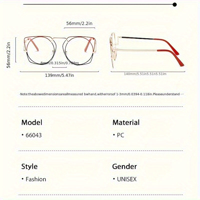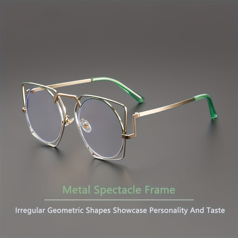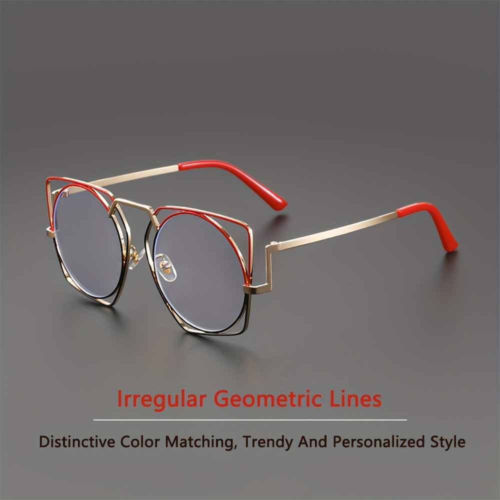 Women's Metal Round-Rectangular Hollow Frame Glasses with Transparent Blue Light Blocking Lenses - Full-Rim Round/Rectangular Eyewear for Daily Use & Party Outfits, Modern Fashion Glasses for Women, Comfortable & Durable Metal Frame, Fashion Hollow Frame