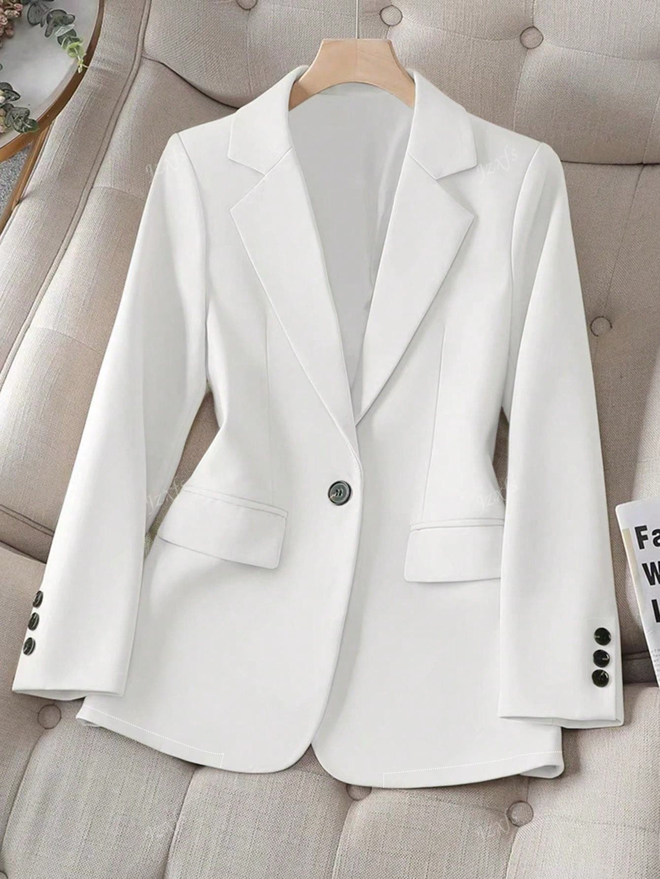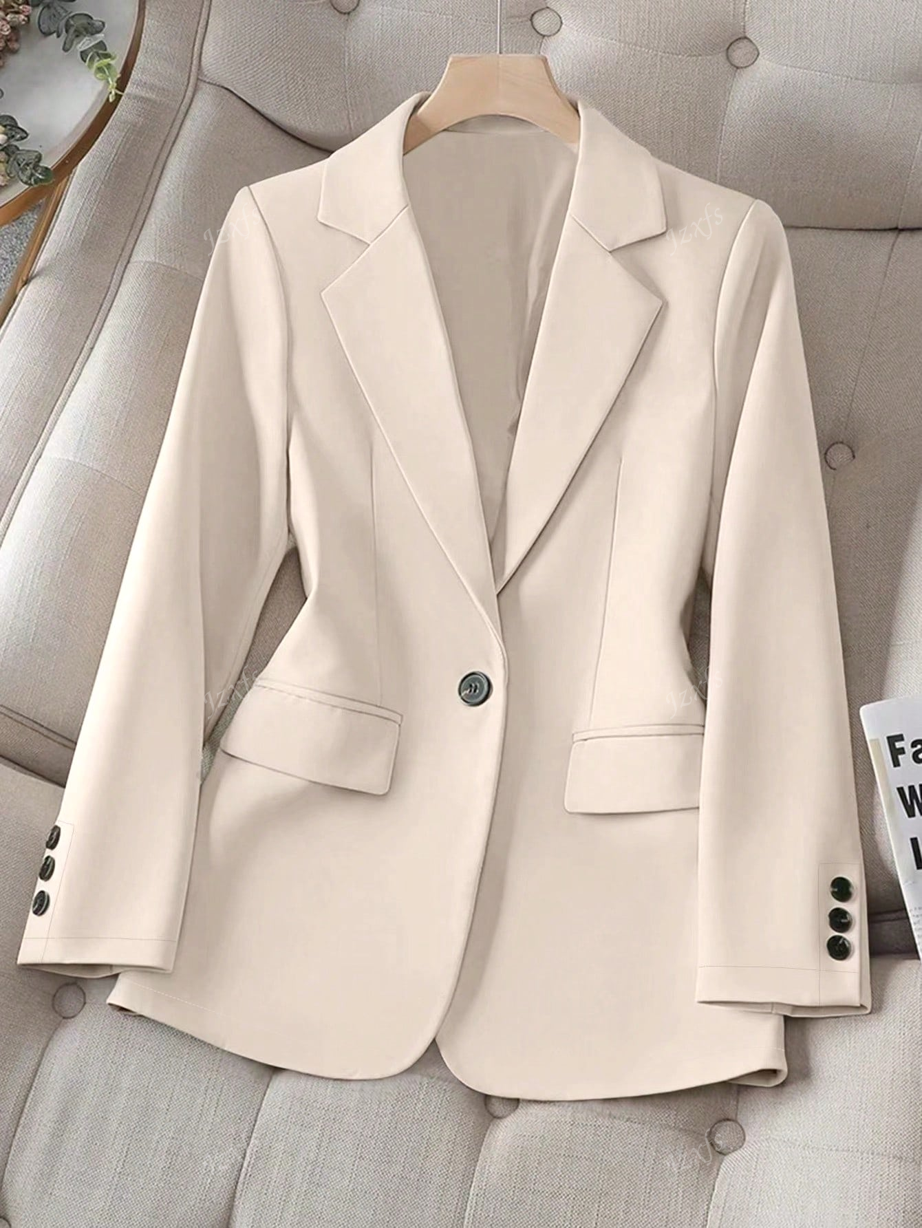 Women's Plain Collarless Single-Breasted Casual Work Blazer Jacket, Autumn