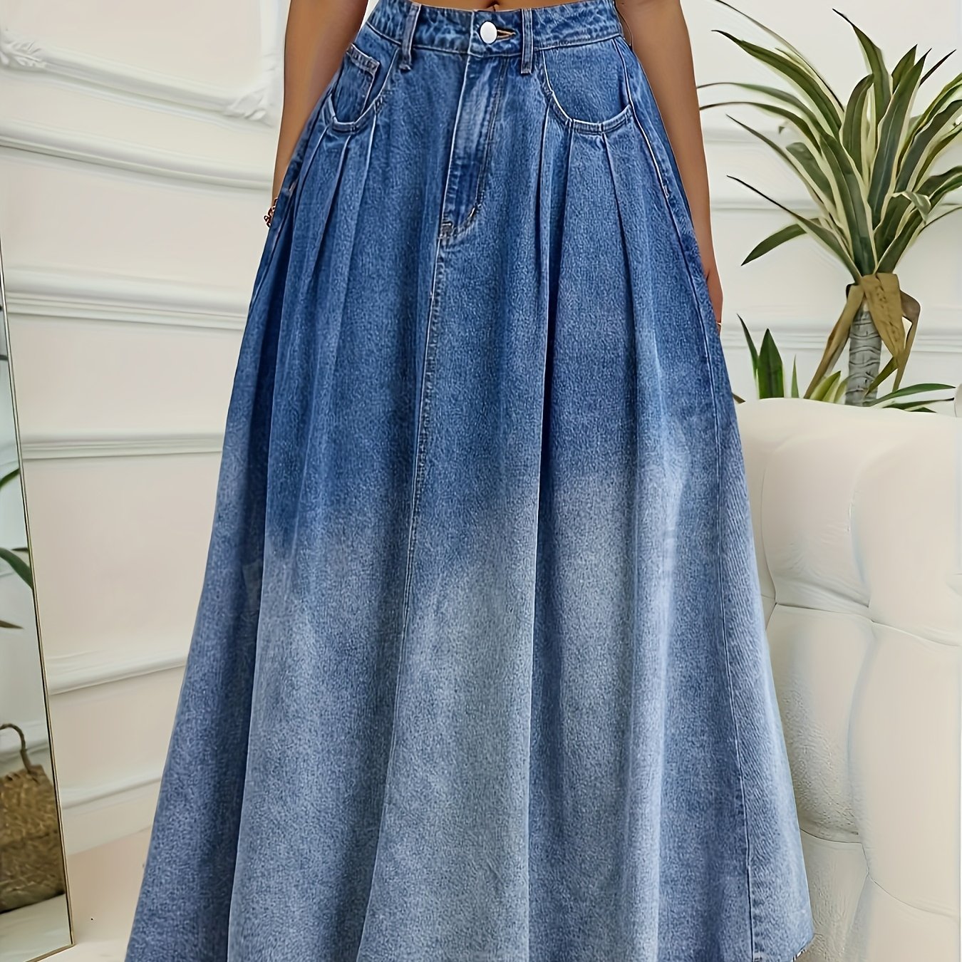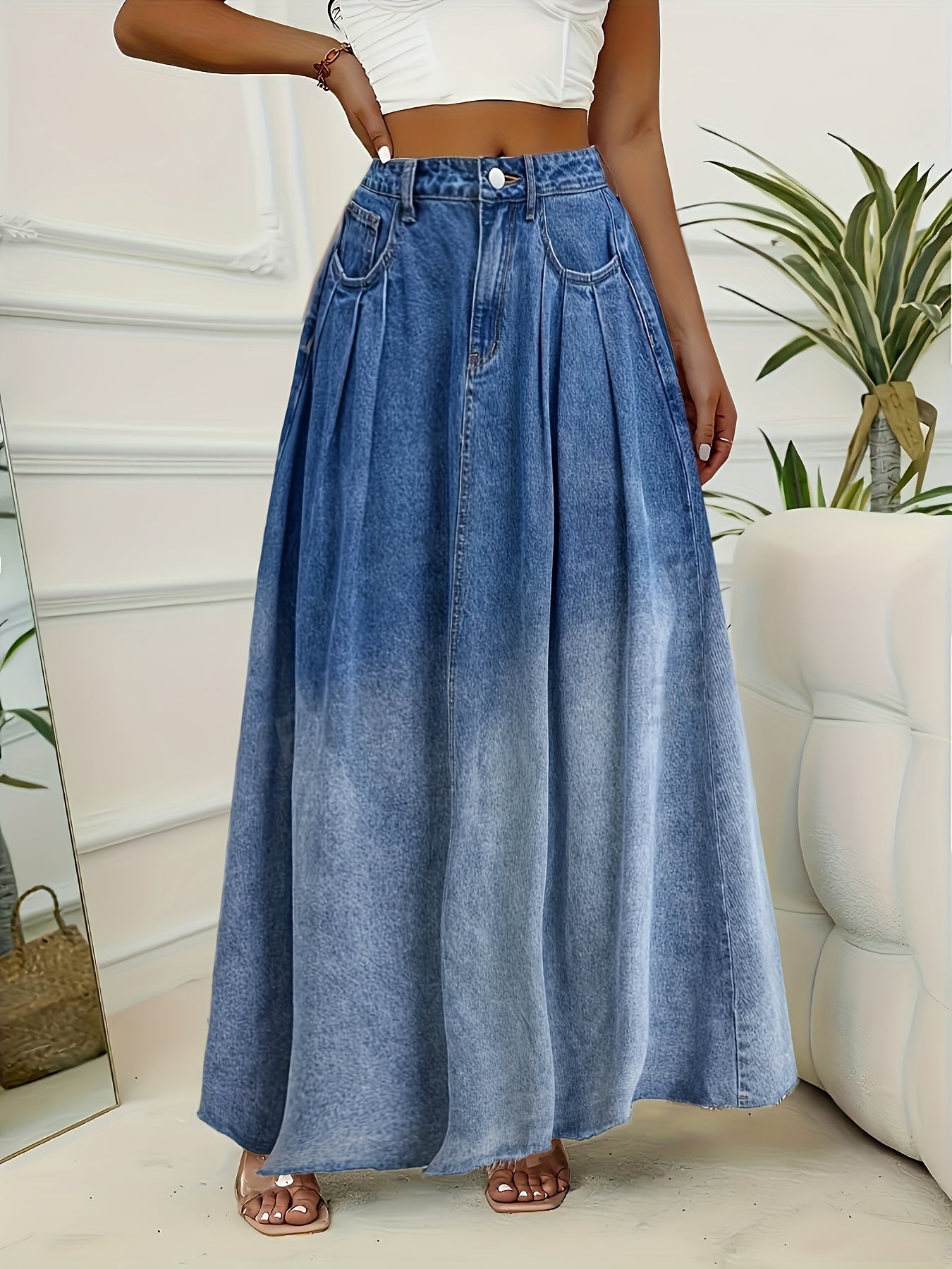 Women'S Pleated Umbrella Skirt Denim Skirt