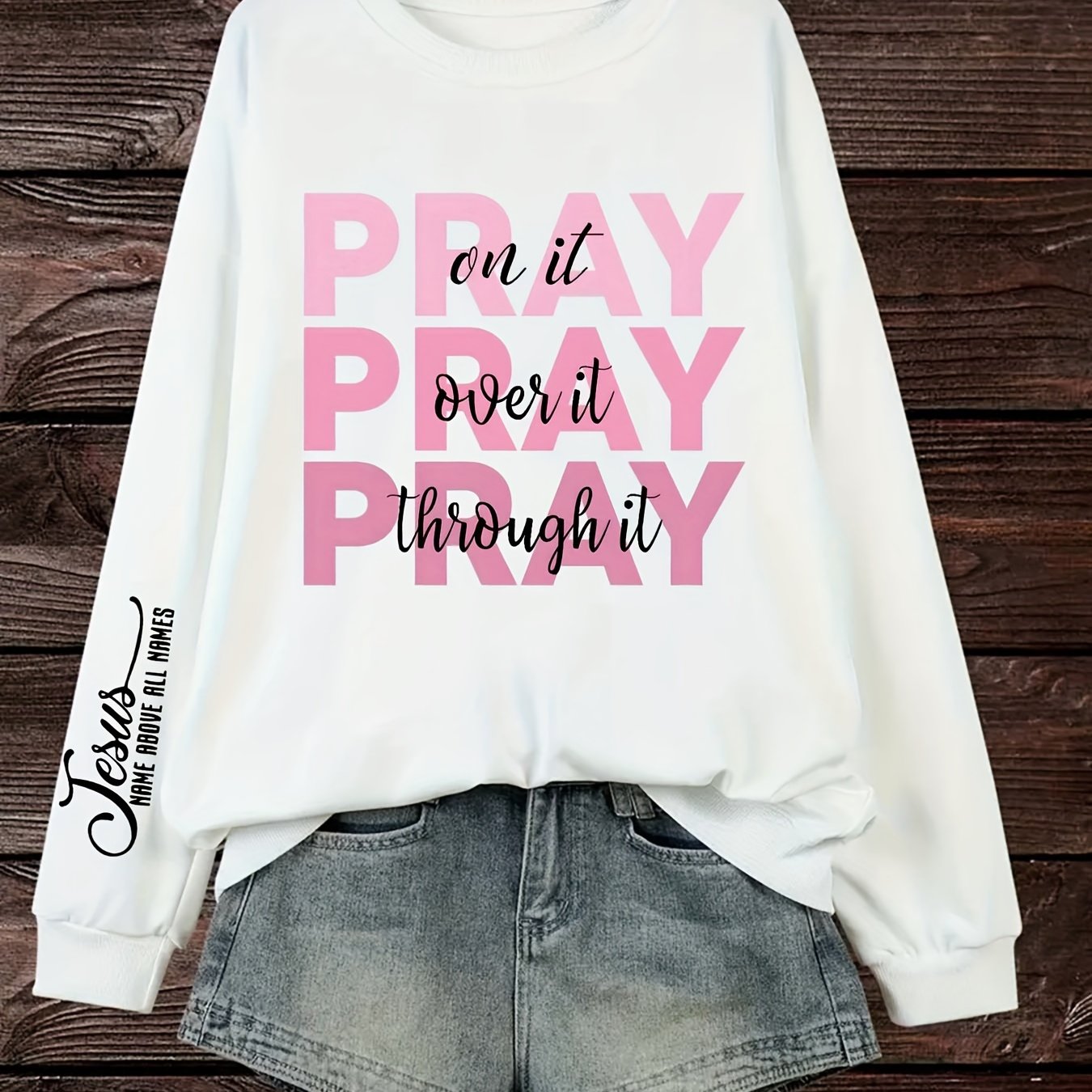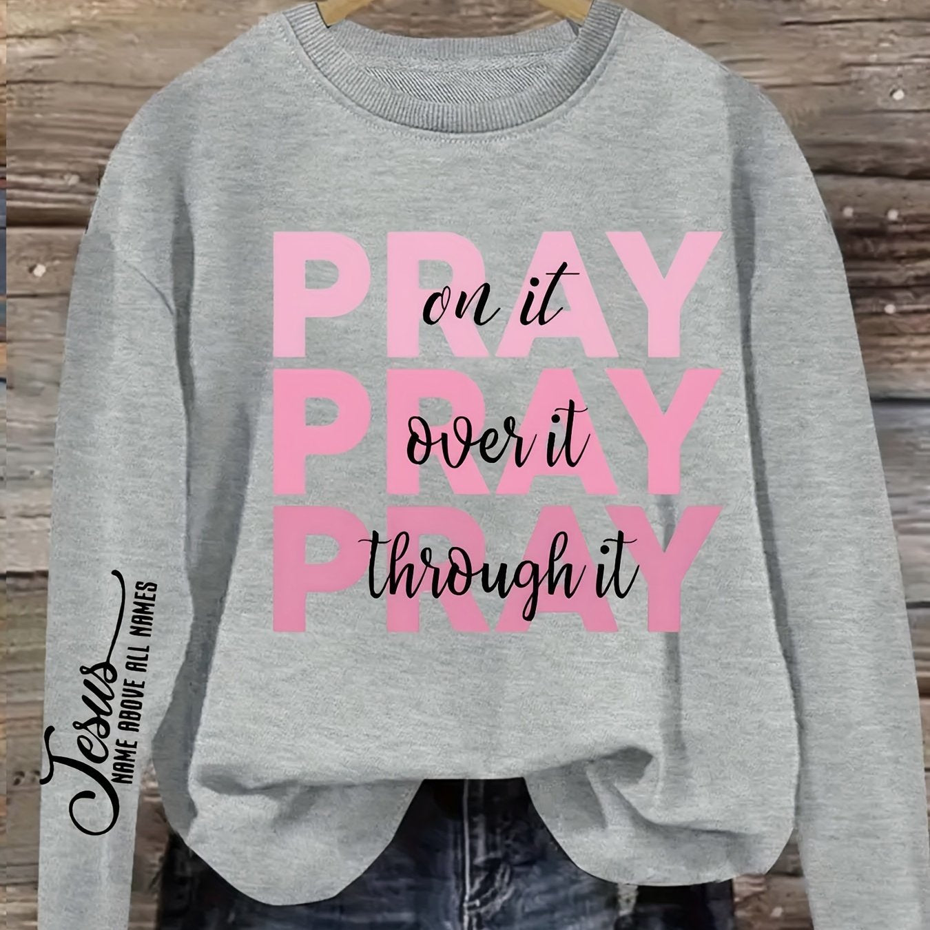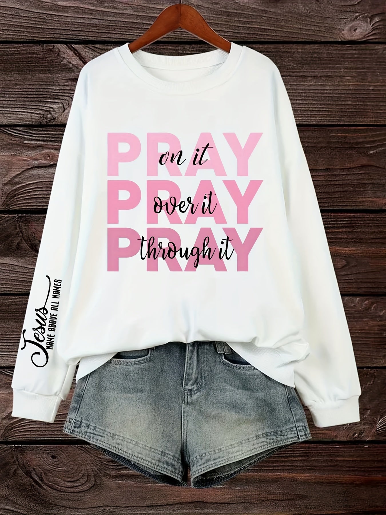 Women's Plus Size PRAY Print Pullover Sweatshirt - Casual Long Sleeve Crew Neck Sweatshirt for Fall & Spring Seasons