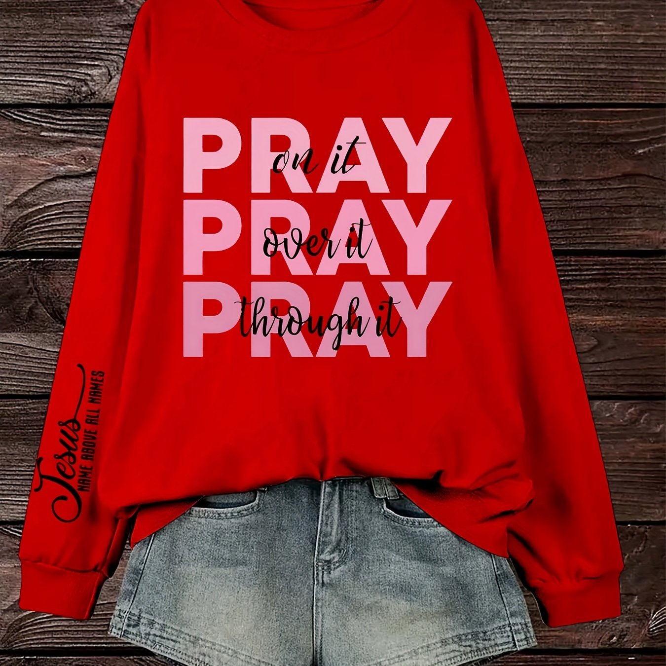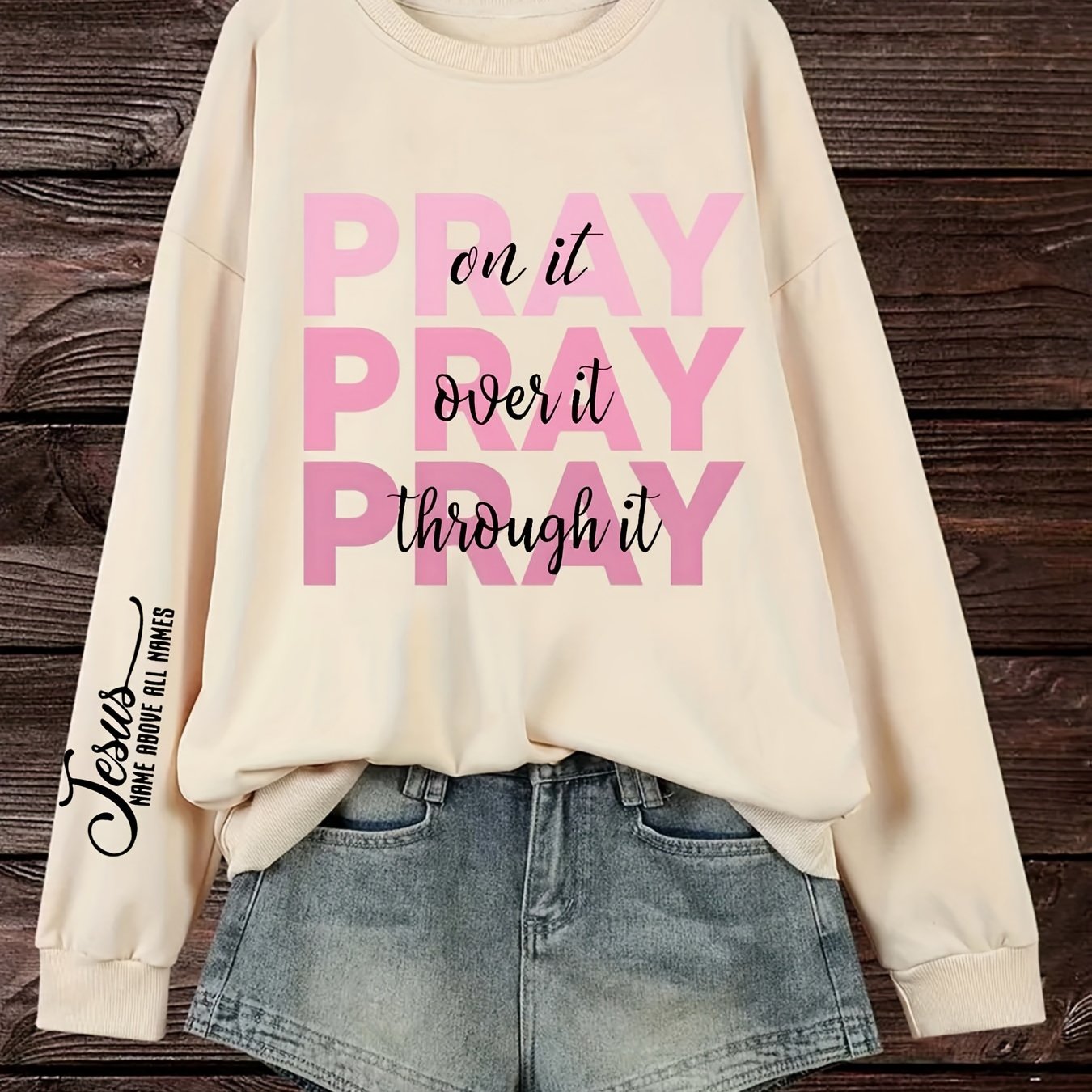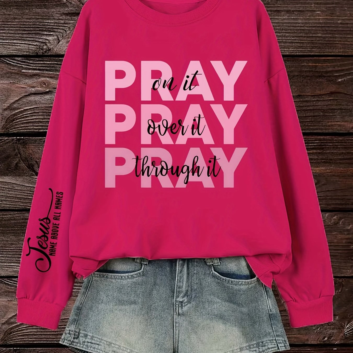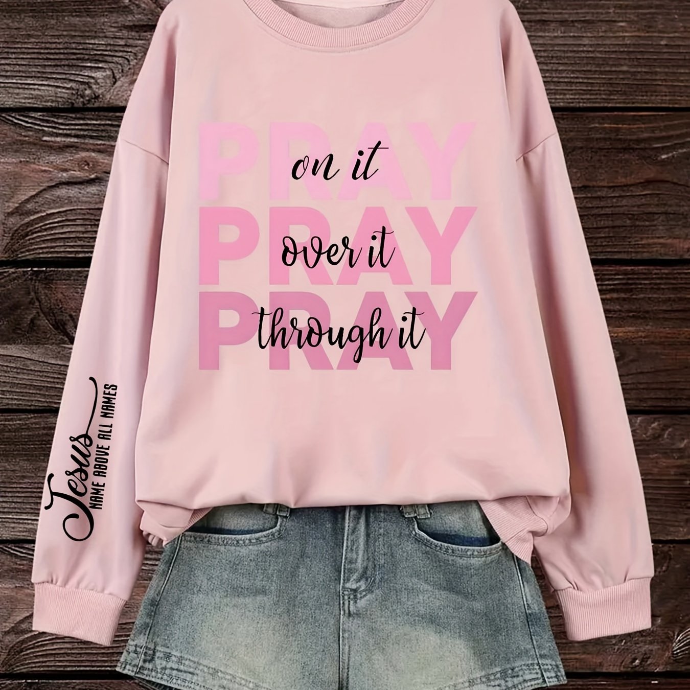 Women's Plus Size PRAY Print Pullover Sweatshirt - Casual Long Sleeve Crew Neck Sweatshirt for Fall & Spring Seasons