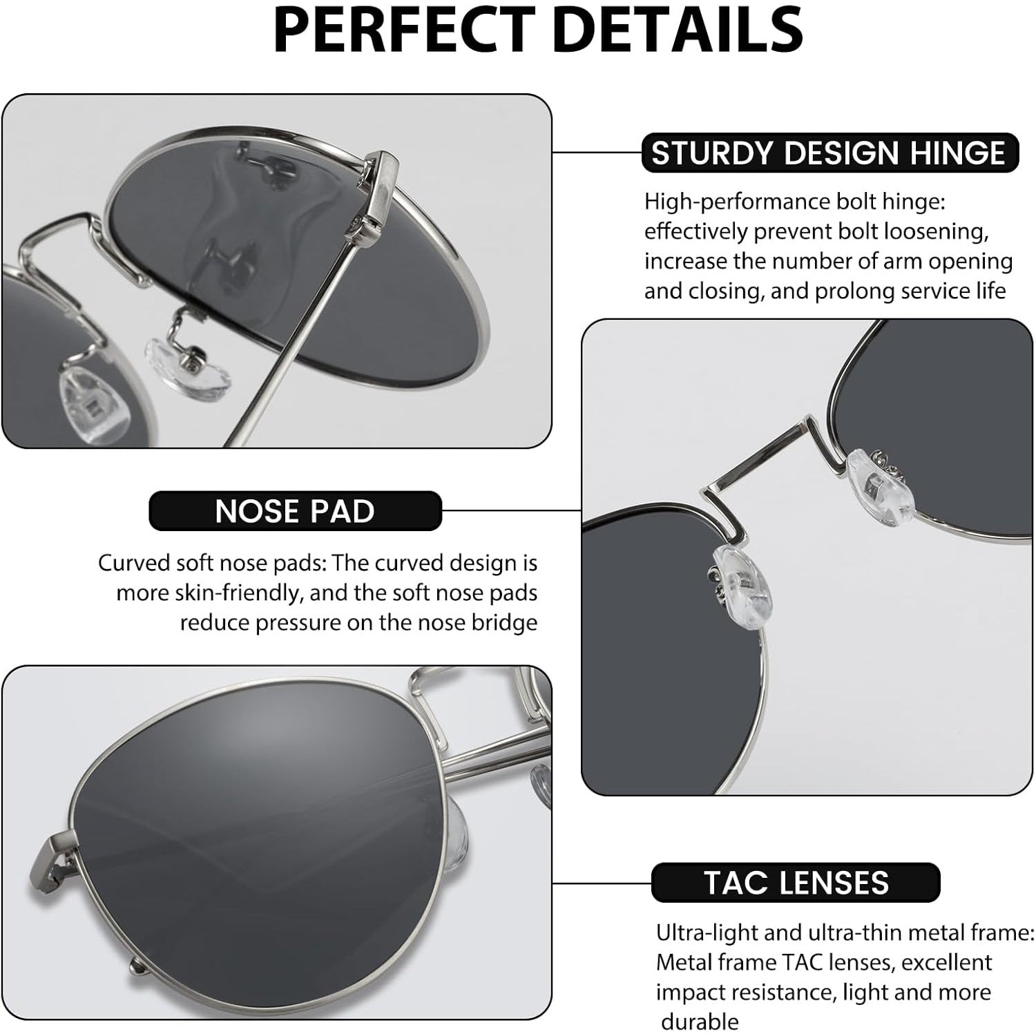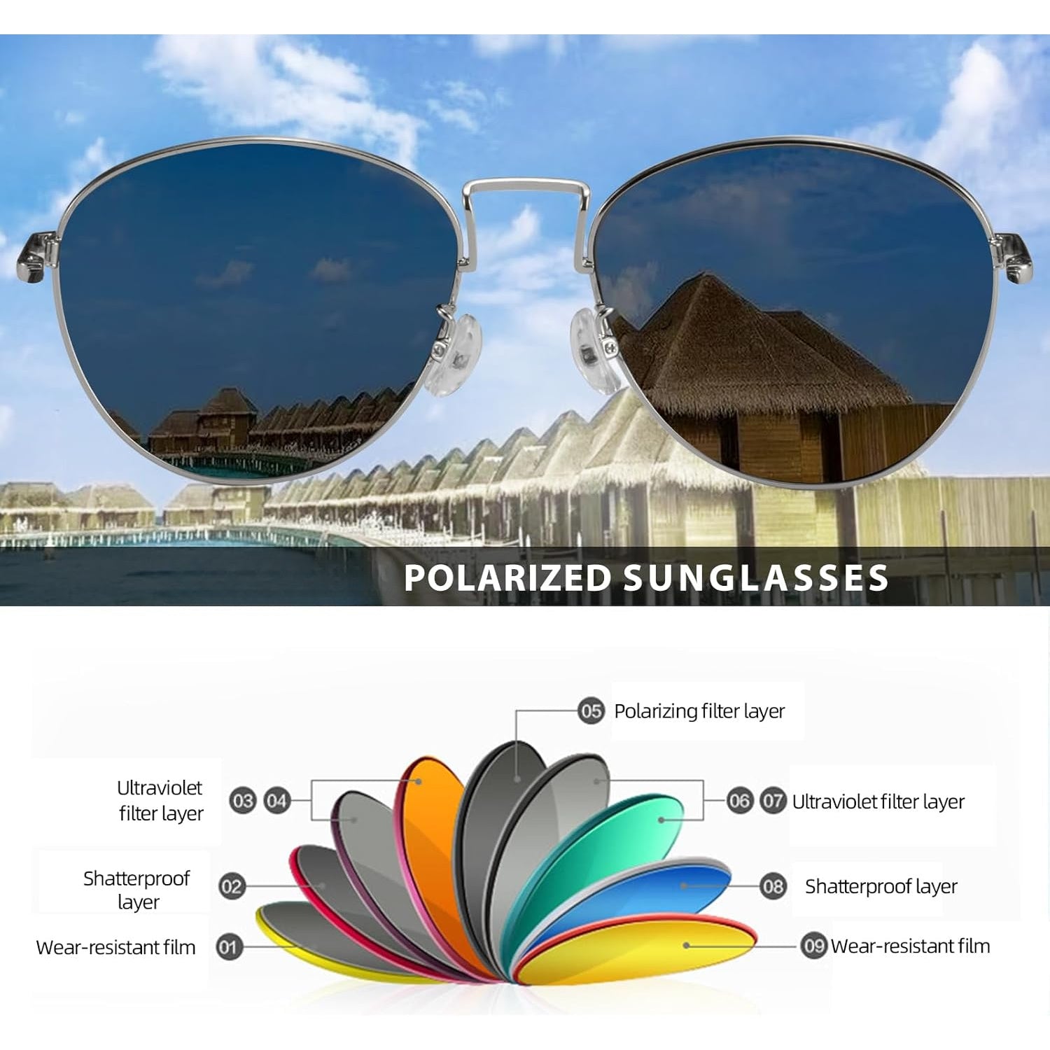 Women's Protection Small Face Round Pilot Fashion Glasses - Oversized Lens, Golden-Rimmed Frame, Lightweight & Stylish for Driving, Outdoor, Everyday Use - Classic Pilot Design with 400 Protection, Comfortable Fit & Scratch-Resistant Coating (Ideal for Sm