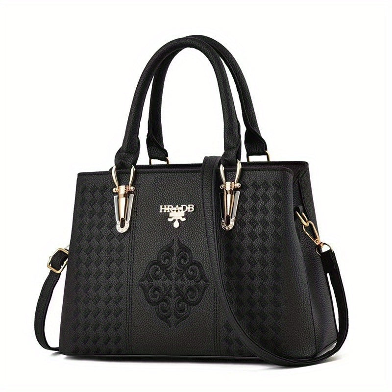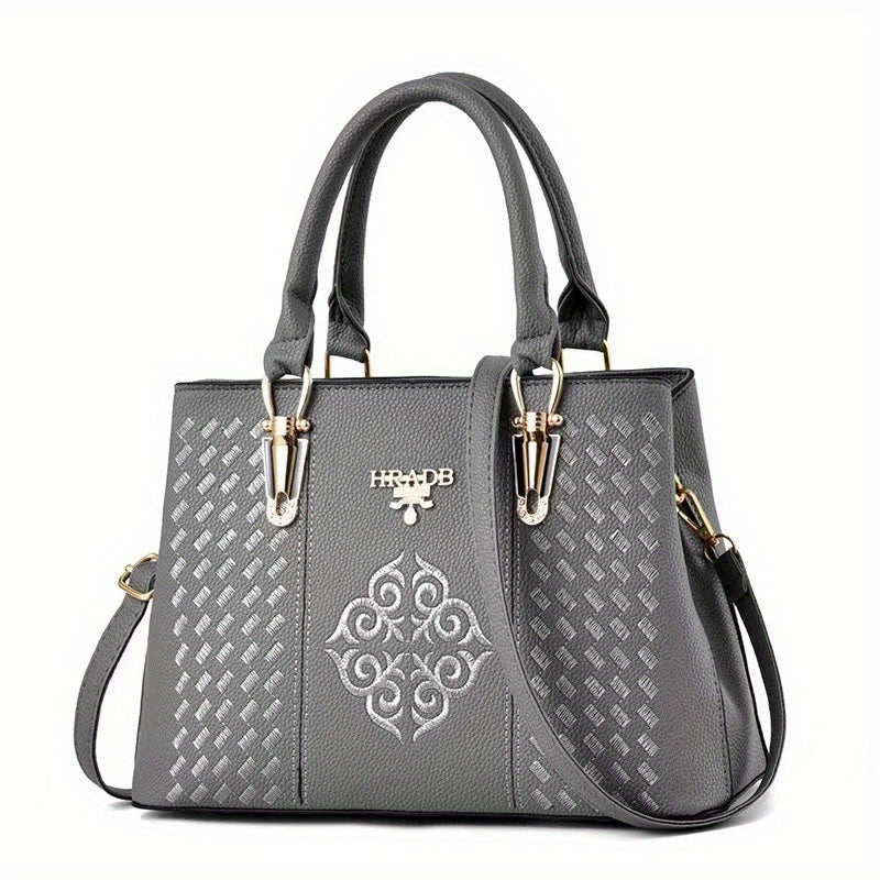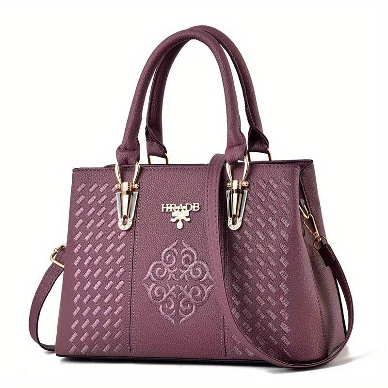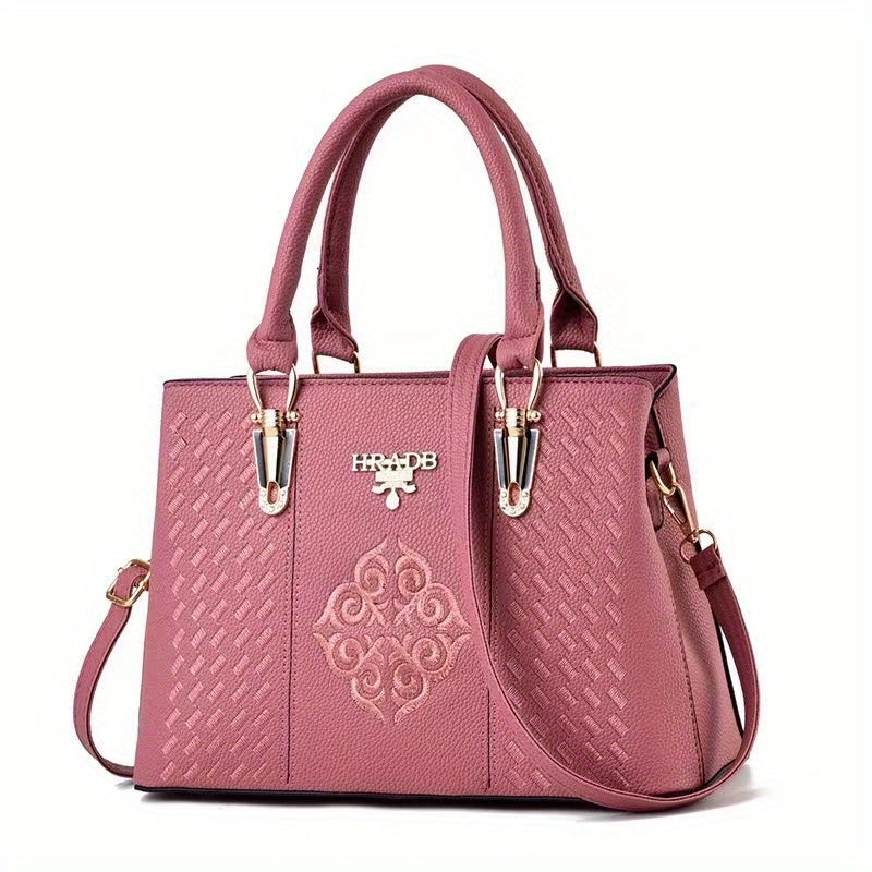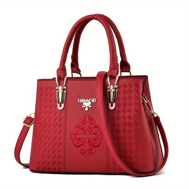 Women'S Red Embroidered Large Capacity Handbag - Synthetic Shoulder Messenger Bag with Zipper Closure, Elegant European & American Style for Everyday Use, Crossbody Purse, Fashionable Accessory, Metallic Hardware Accents