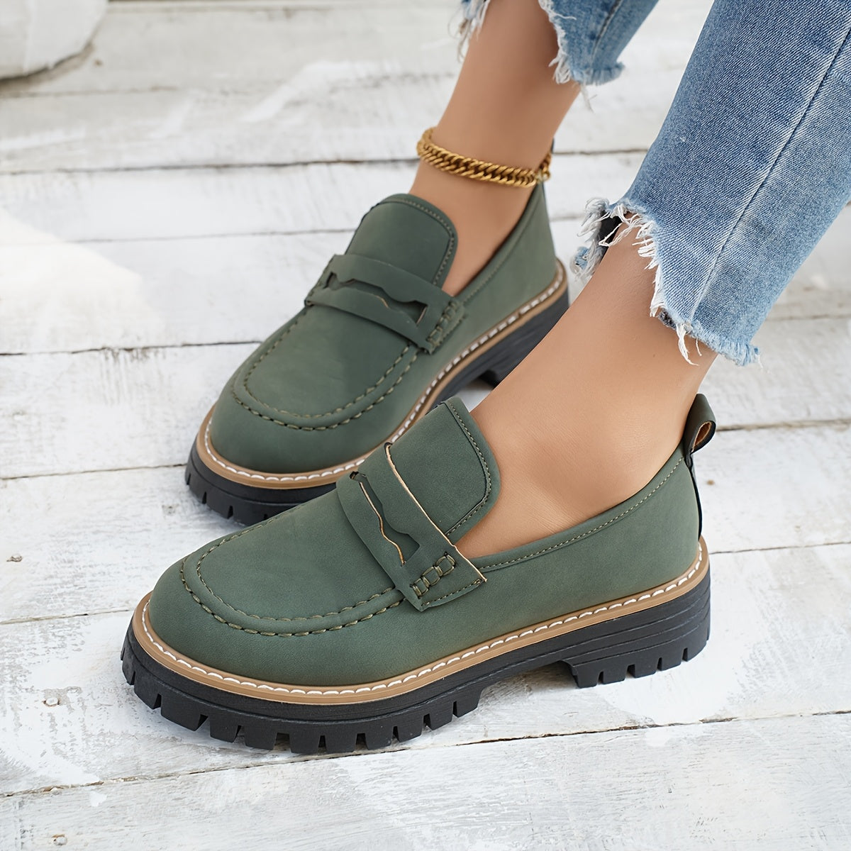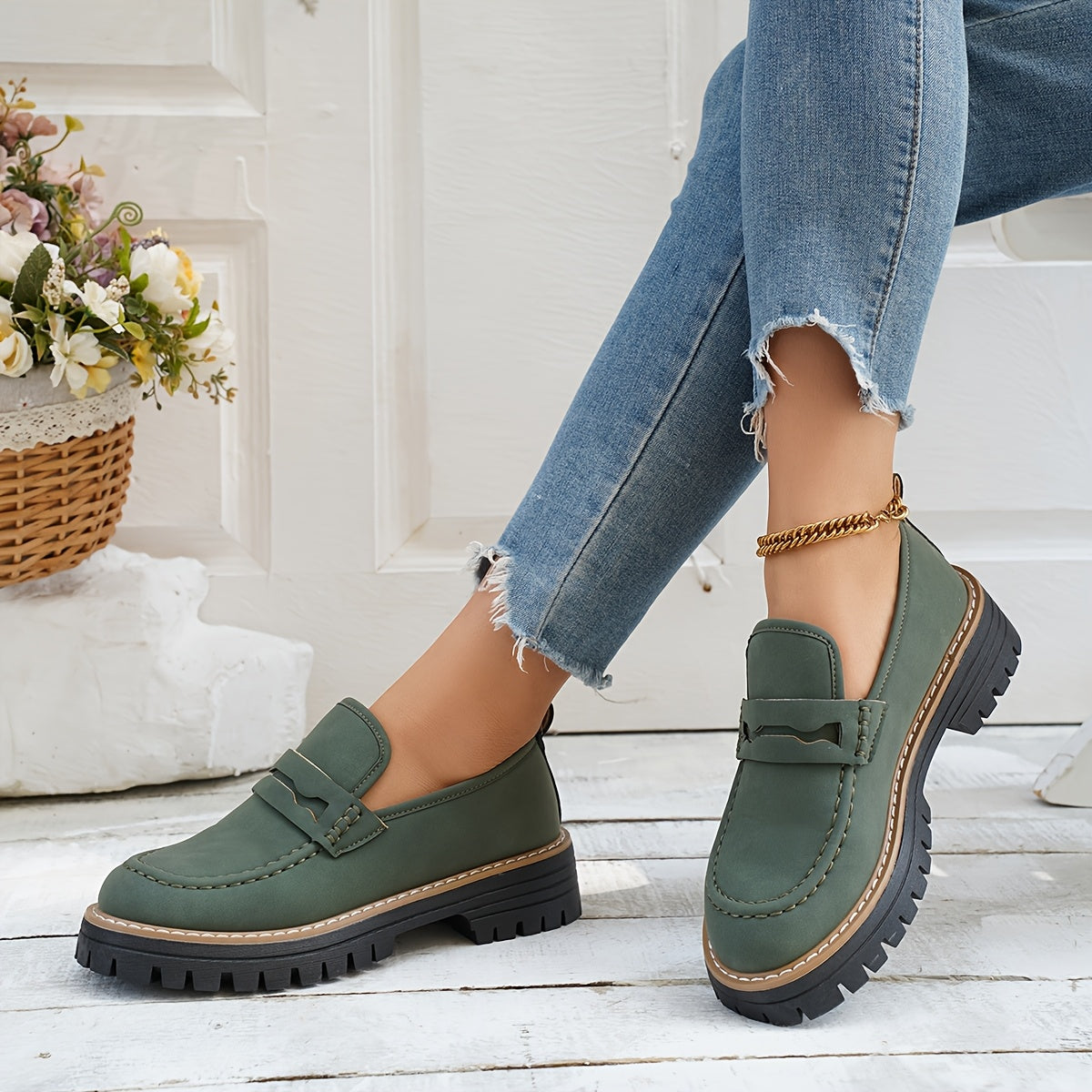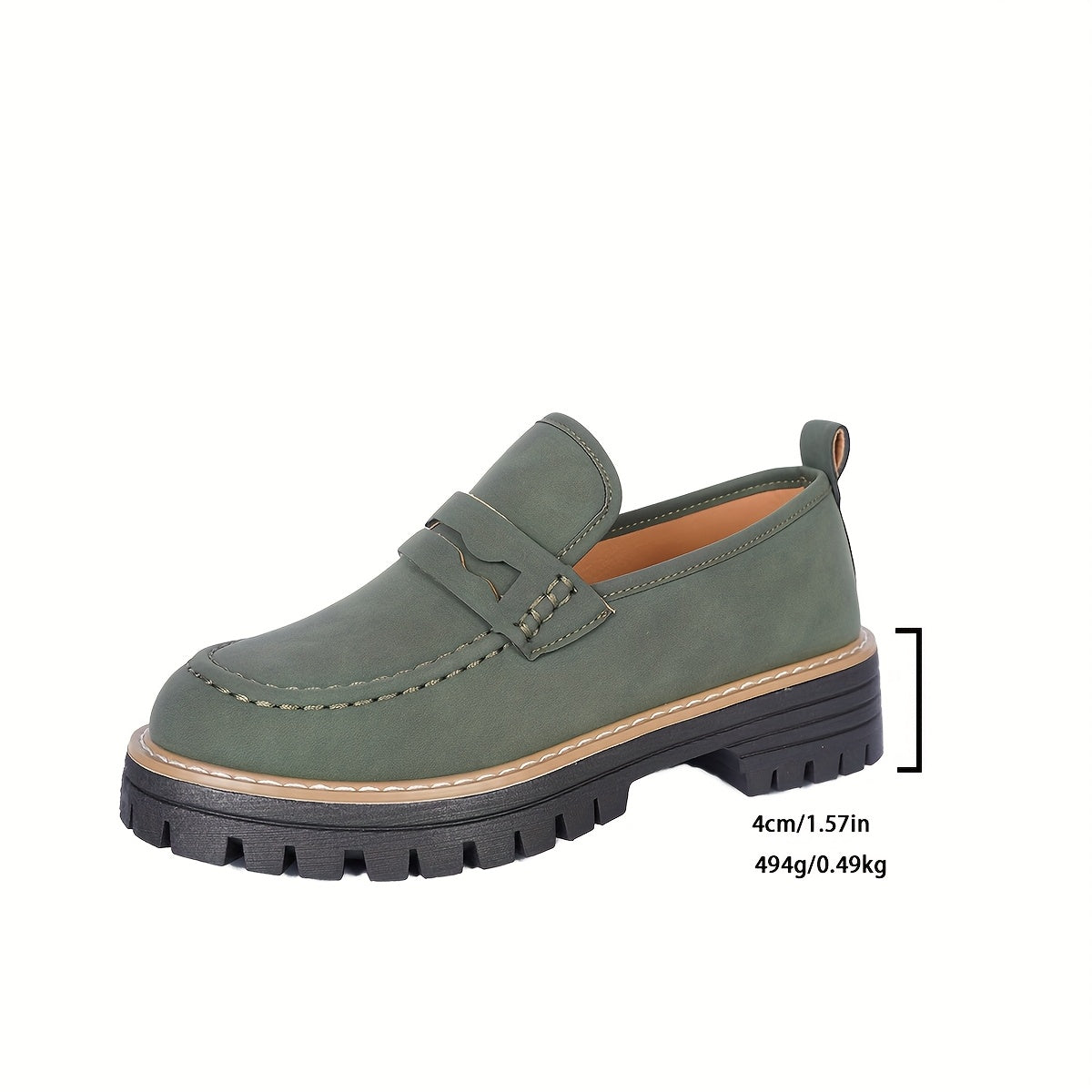 Women's Retro British Style Penny Loafers - Lightweight Comfortable Slip-On Shoes with Thick Cushioned Sole, Anti-Slip Rubber Outsole & Faux Cover Upper for All-Season Casual & Work Wear, Allseason Shoes | Stylish Slipon | Faux Cover Shoes, Ladies Shoes