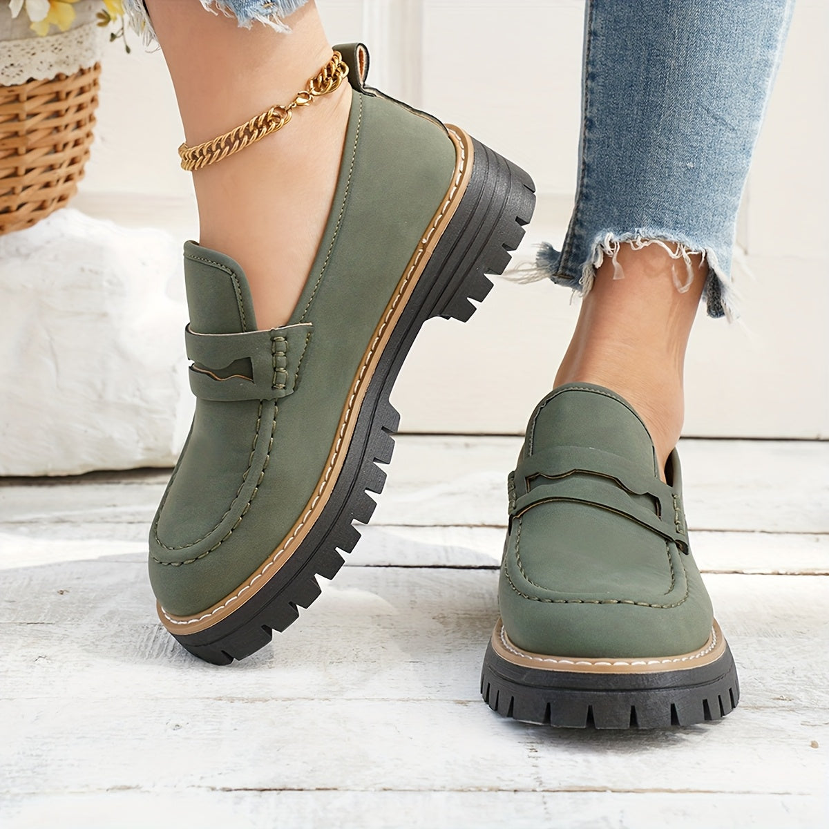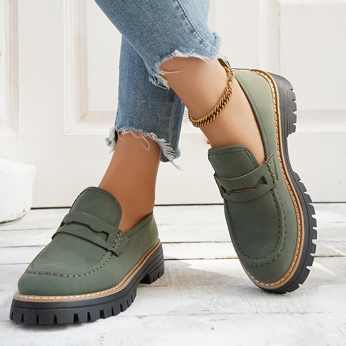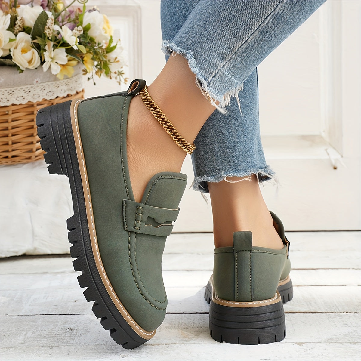 Women's Retro British Style Penny Loafers - Lightweight Comfortable Slip-On Shoes with Thick Cushioned Sole, Anti-Slip Rubber Outsole & Faux Cover Upper for All-Season Casual & Work Wear, Allseason Shoes | Stylish Slipon | Faux Cover Shoes, Ladies Shoes