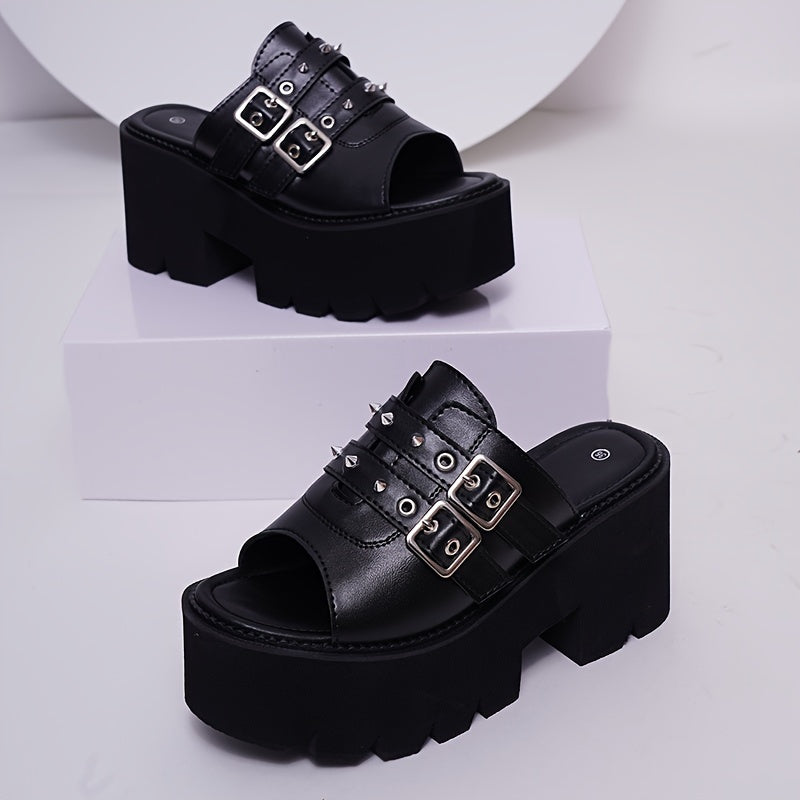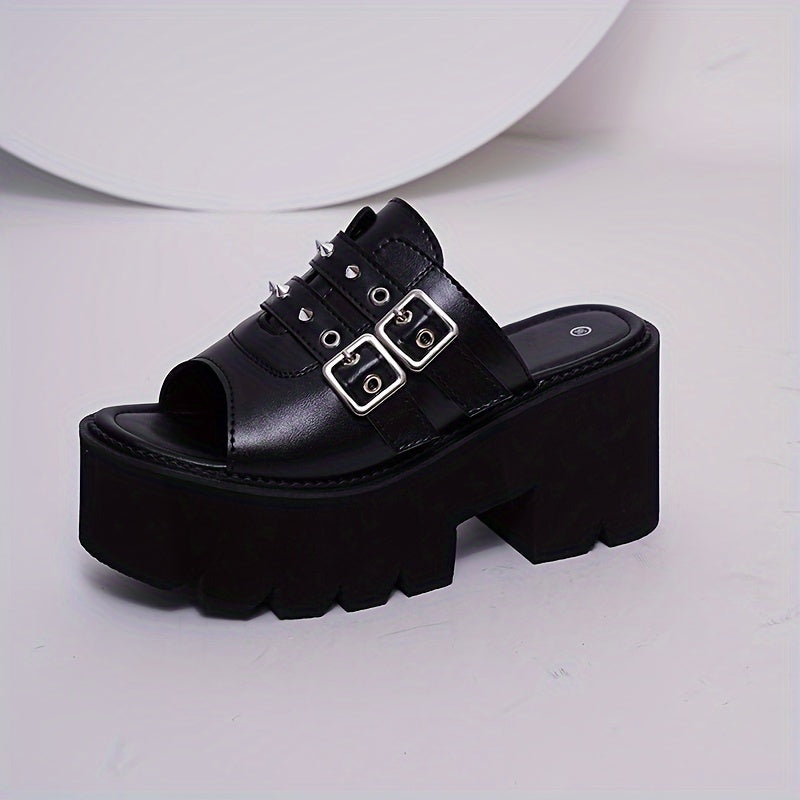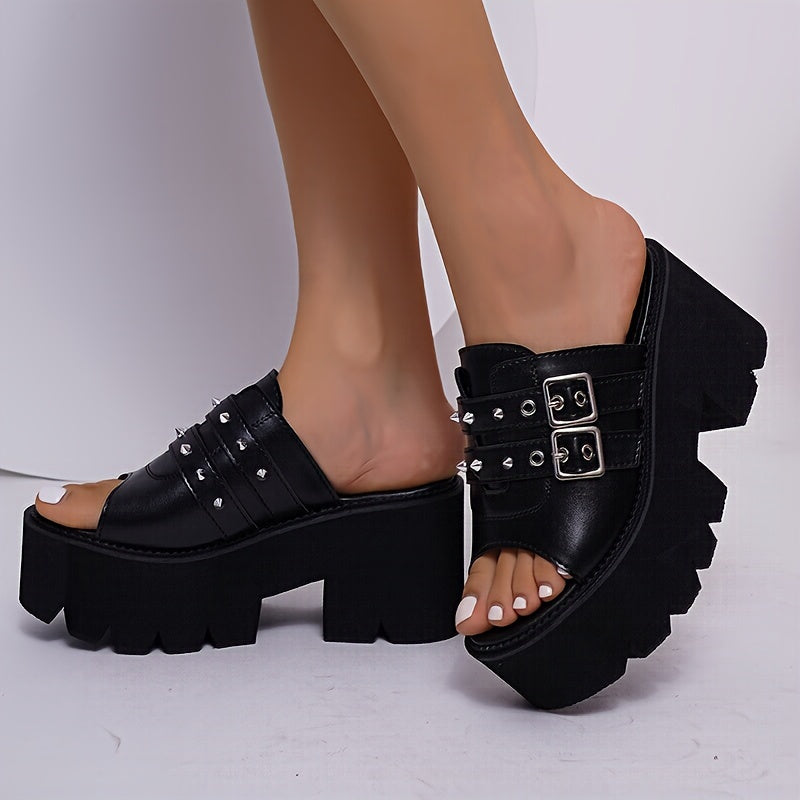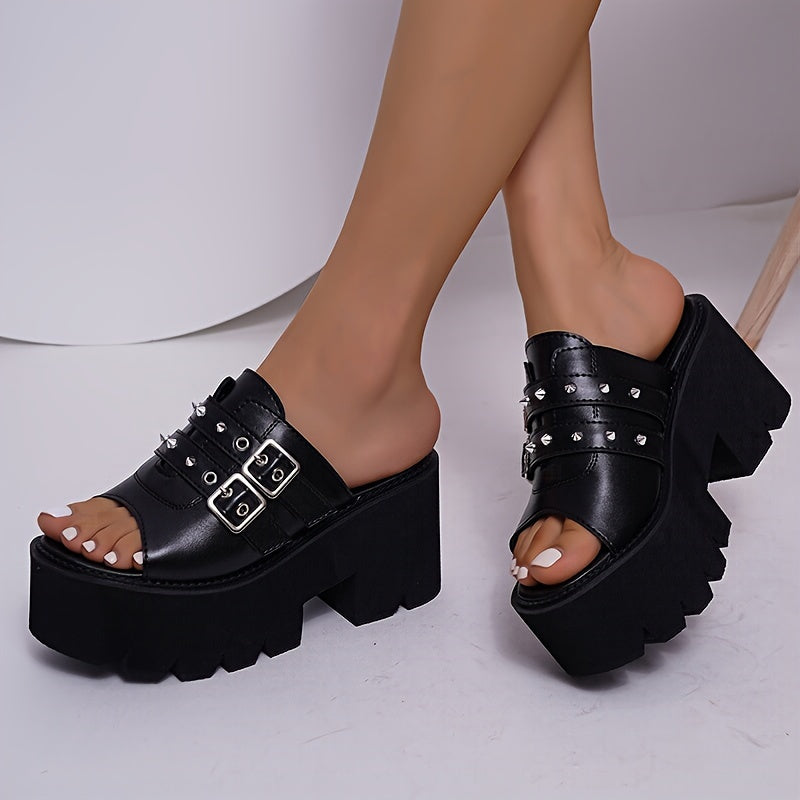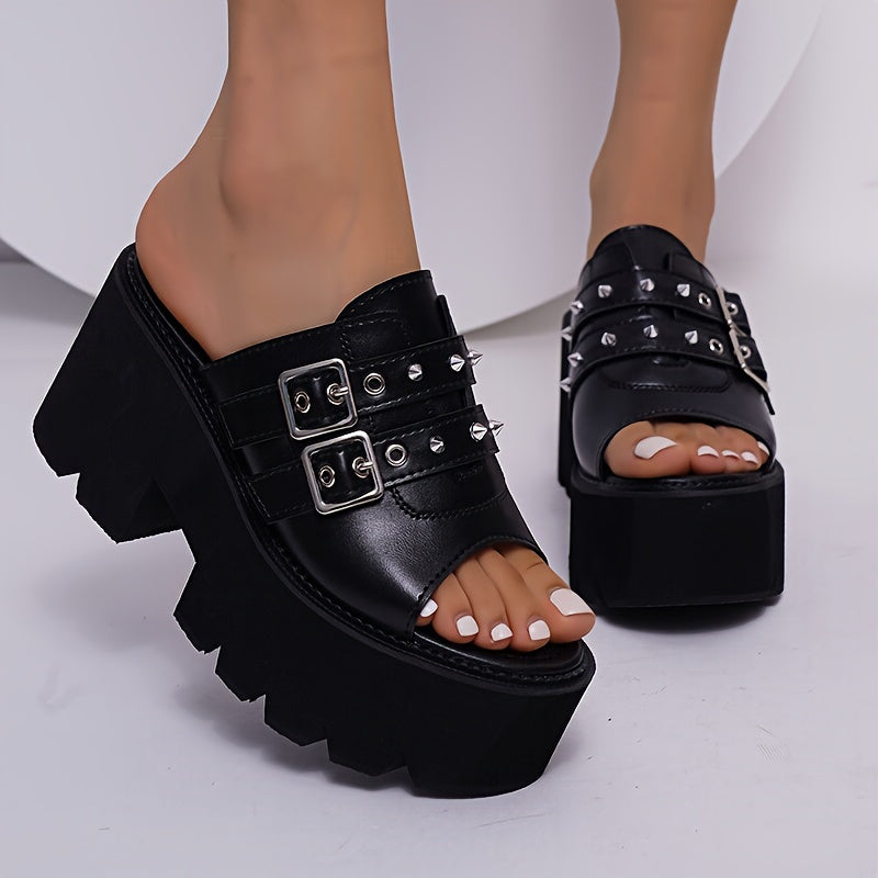 Women's Rivets Decor Platform Sandals, Casual Open Toe Summer Shoes, Comfortable Slip On Sandals