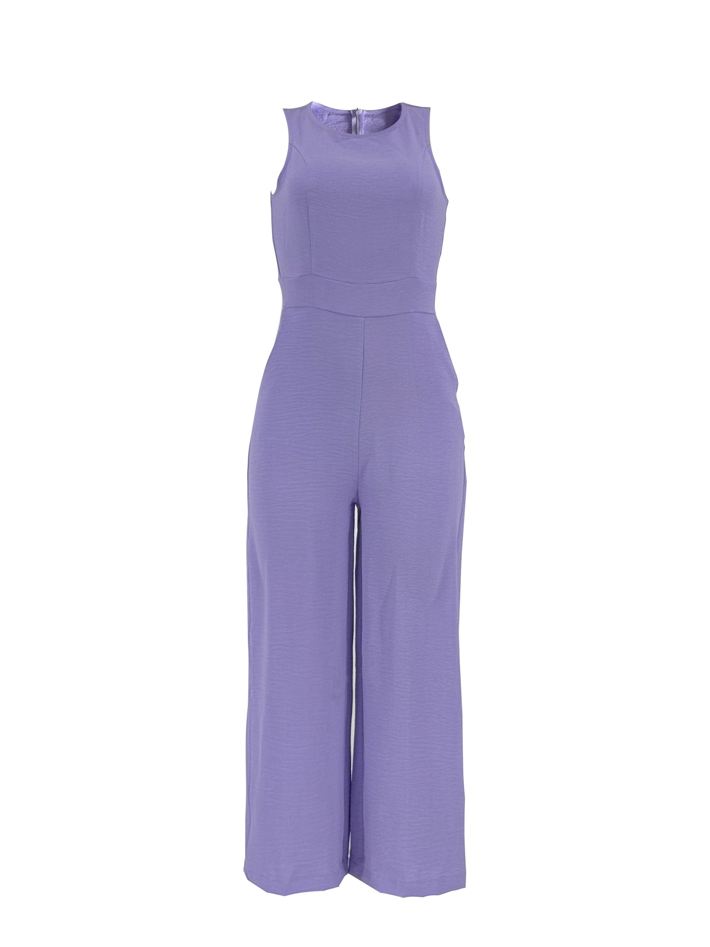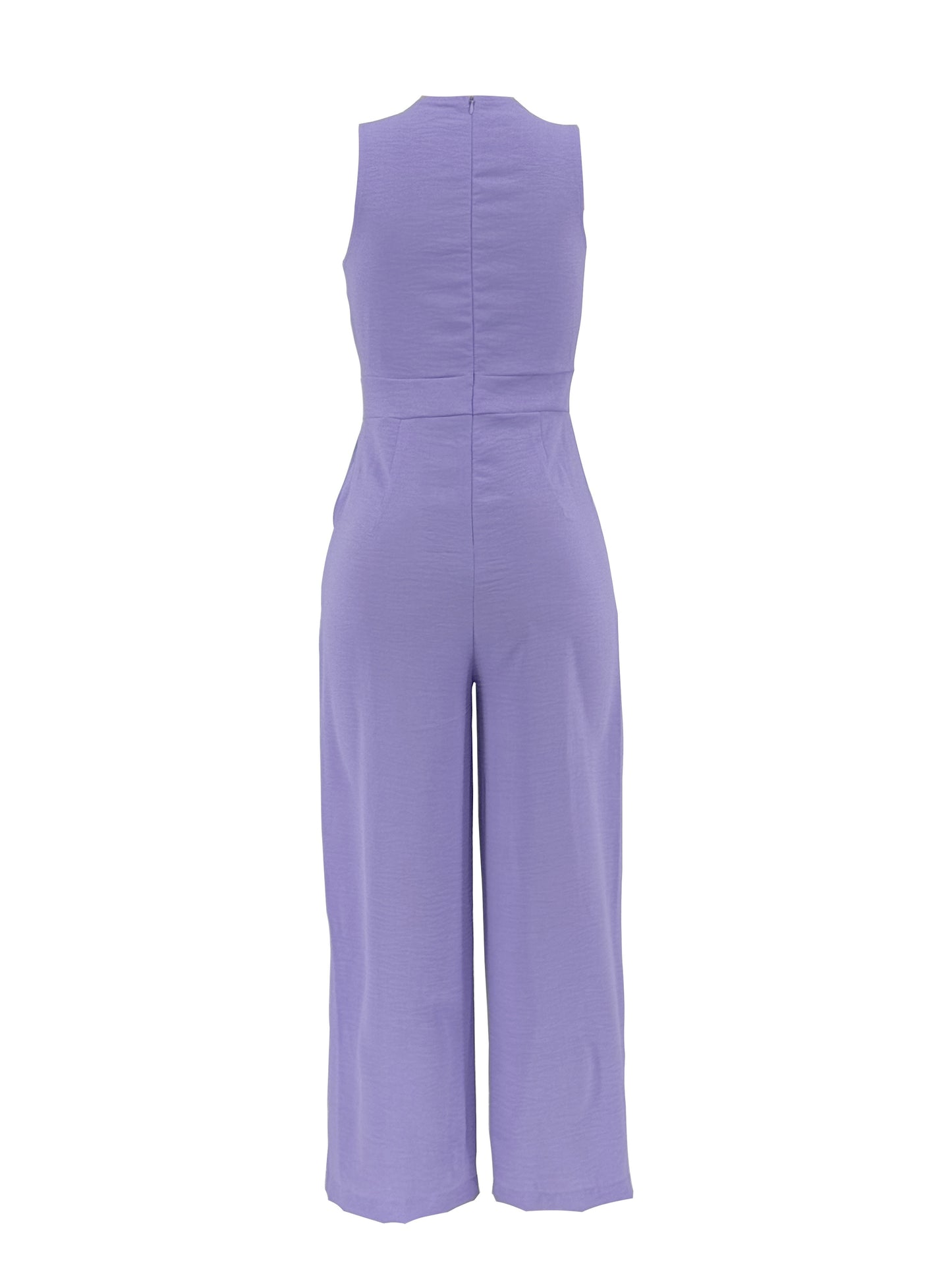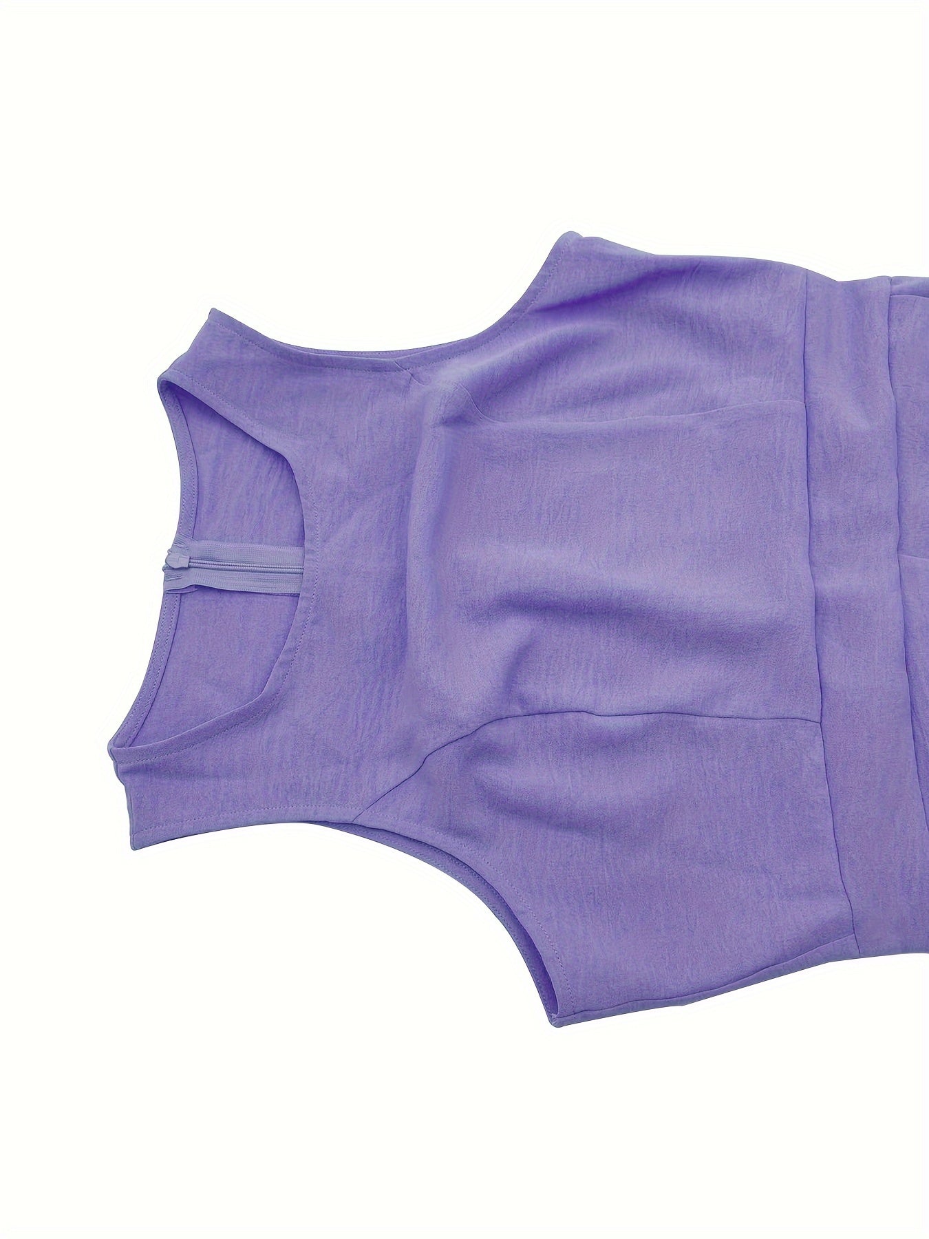 Women's Solid Color Casual Pocket Body Suit, Elegant No-Sleeve Round Neck Body Suit