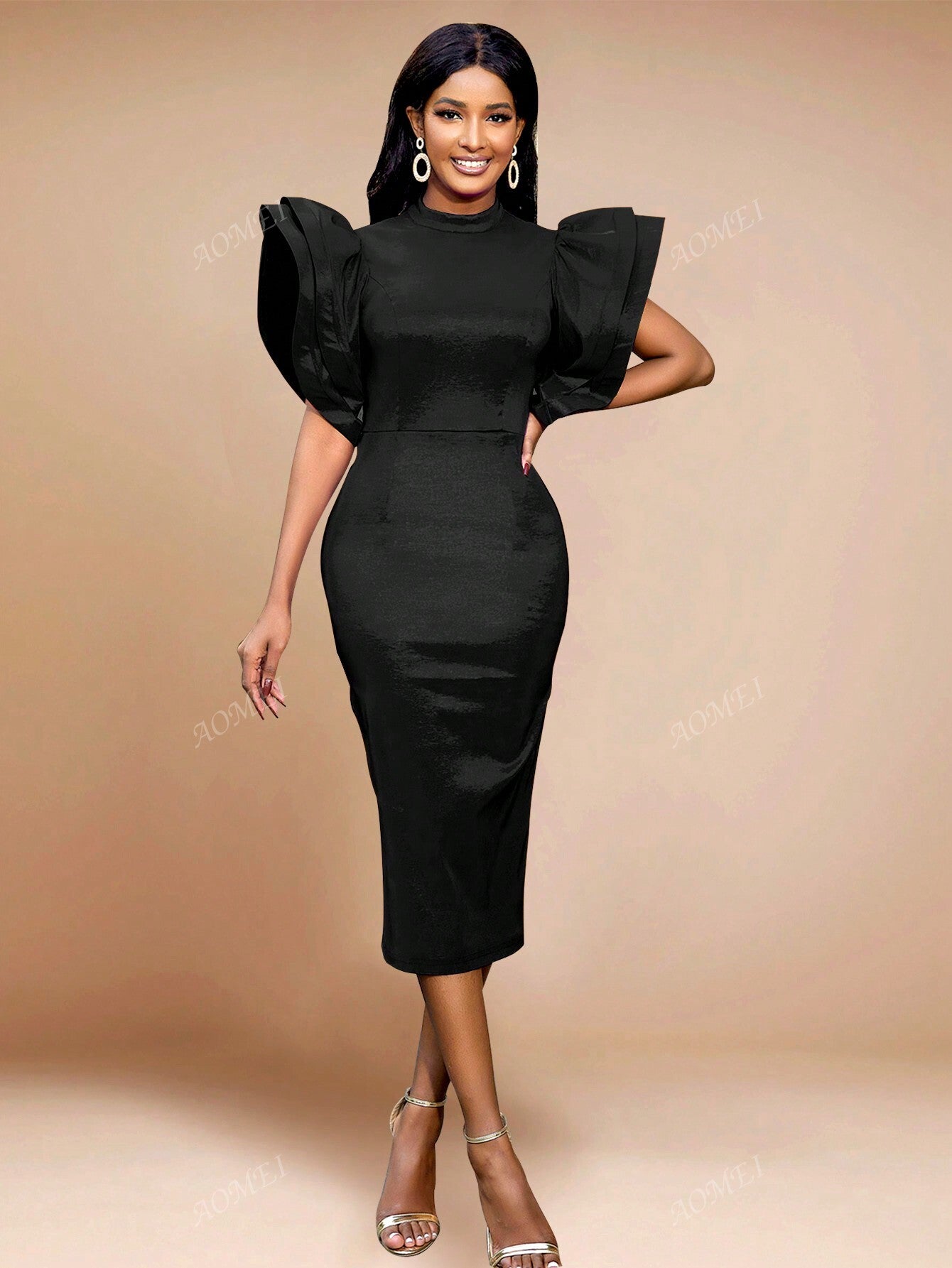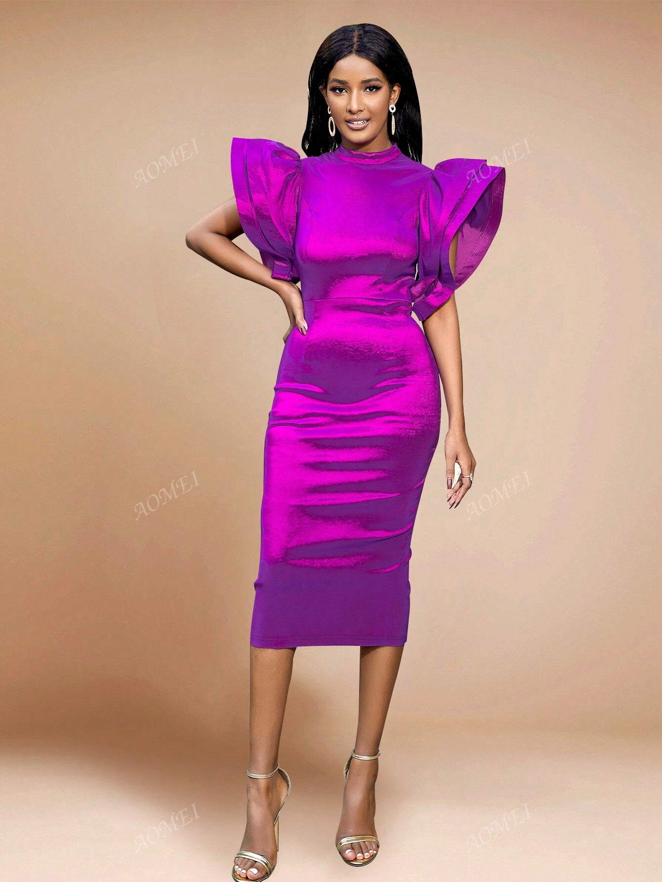 Women's Turtleneck Glitter Ruffles Multi-Layered Sleeve Bodycon New Year Party Midi Dress High Neck Formal Evening Dress,For Birthday, Wedding Guest, Graduation, Dinner, Homecoming