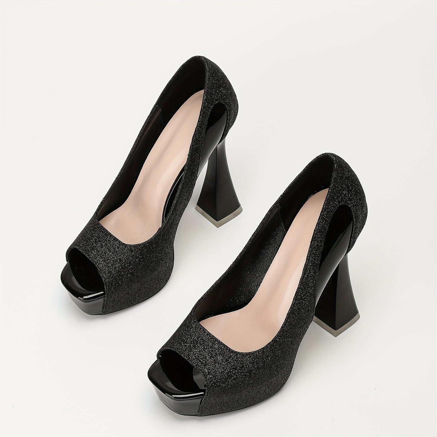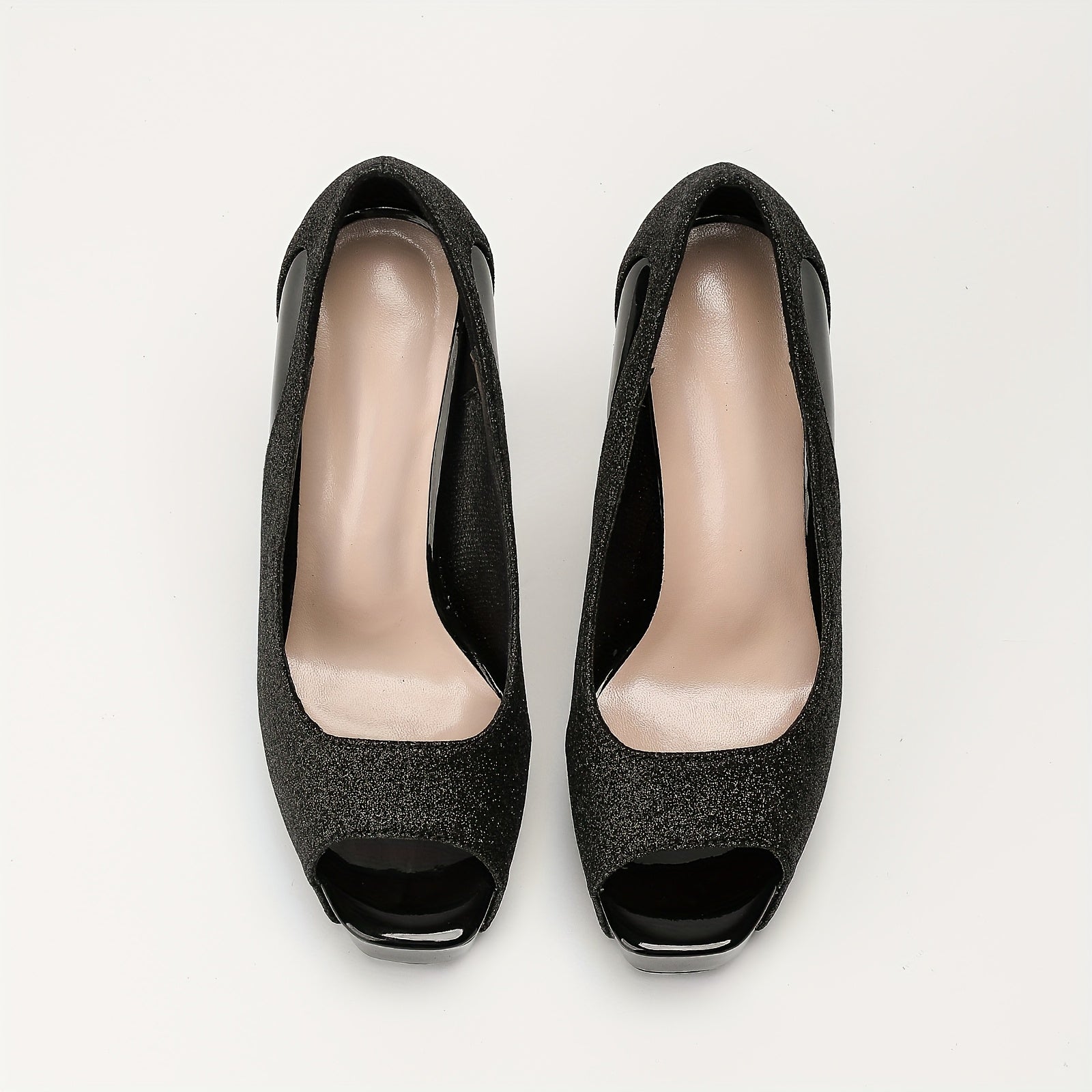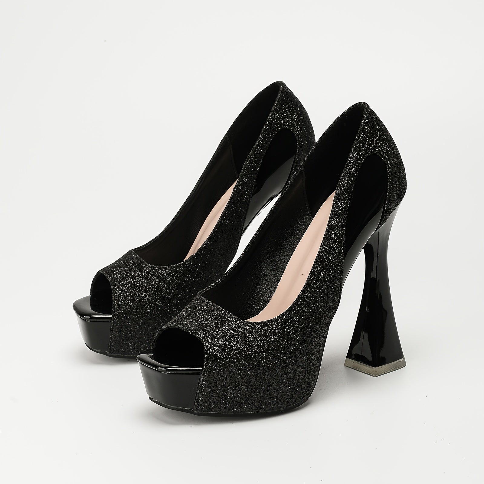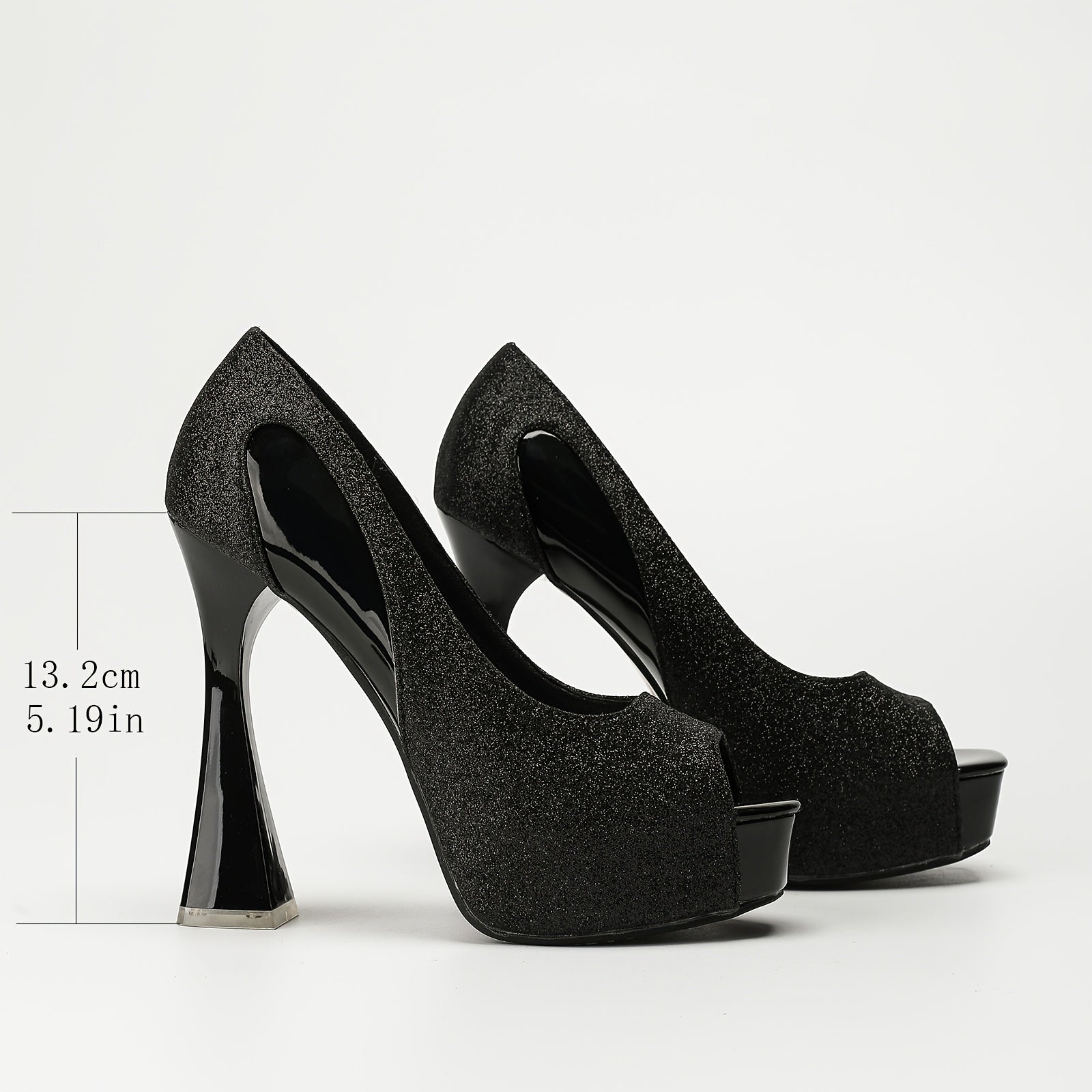Women'S Ultra-High Glittery Black Heels with One-Size Fits All, Sexy Party Shoes, Breathable & Comfortable, Pointed Toe, TPU Sole, Summer Fashion, Ladies High Heels