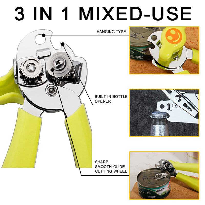 - 【Heavy-Duty and Efficient】The stainless steel cutting blade maintains its strength and sharpness, quickly and smoothly cutting through cans in a matter of seconds, leaving a smooth edge. It is suitable for opening cans of various sizes. The food-grade cutting wheel ensures 100% food safety.