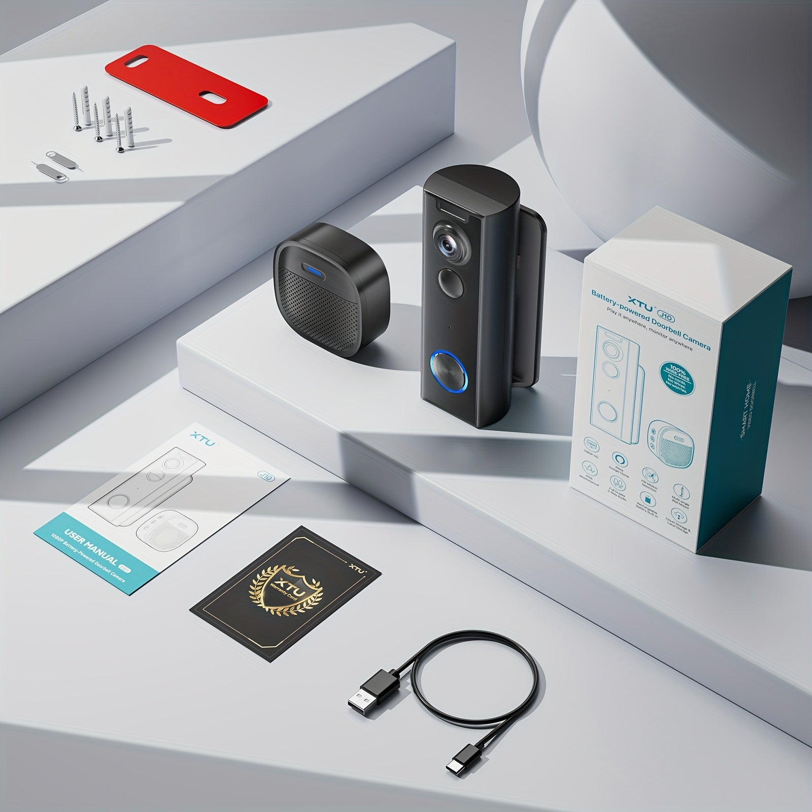 XTU Wireless Doorbell Camera With Chime, No Subscription, 2K Video, 2-way Audio, Instant Alert, Human Detection, Night Vision, 2.4GHz Wi-Fi (not Supports 5G Wifi), Works With Alexa And Google Assistant, Indoor And Outdoor