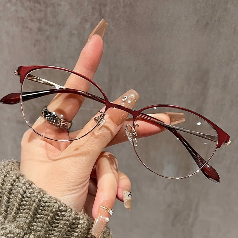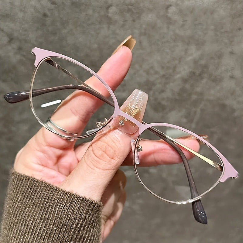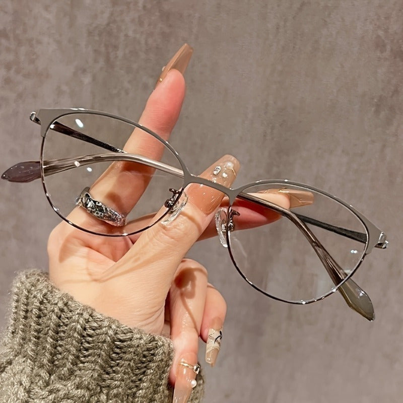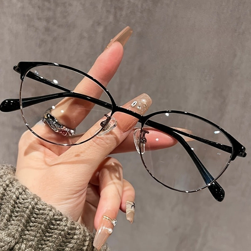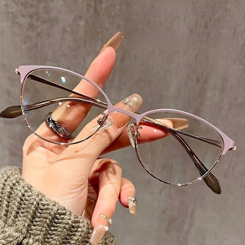 Y2K Cat-Eye Round Metal Frame Women's Glasses - Light Purple & Black Non-Prescription Fashion Eyewear with Decorative Lenses, Japanese Korean Street Style Accessories, Polished Design & Gift Box