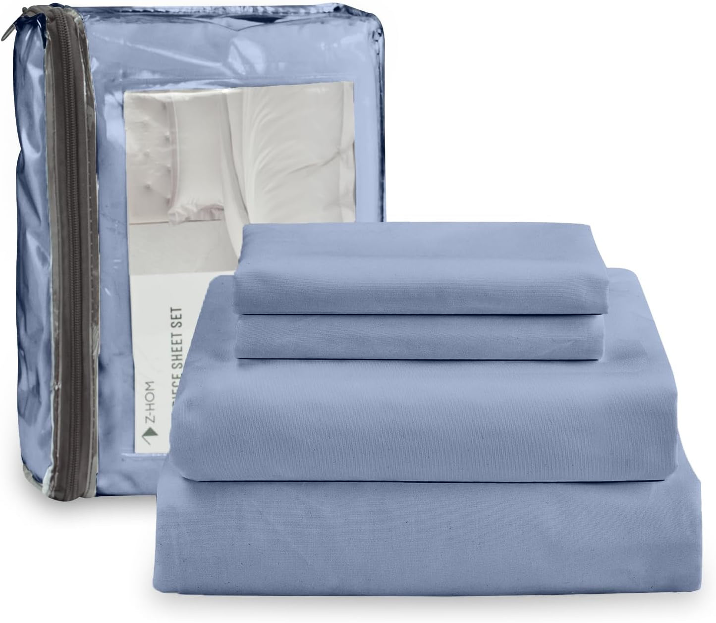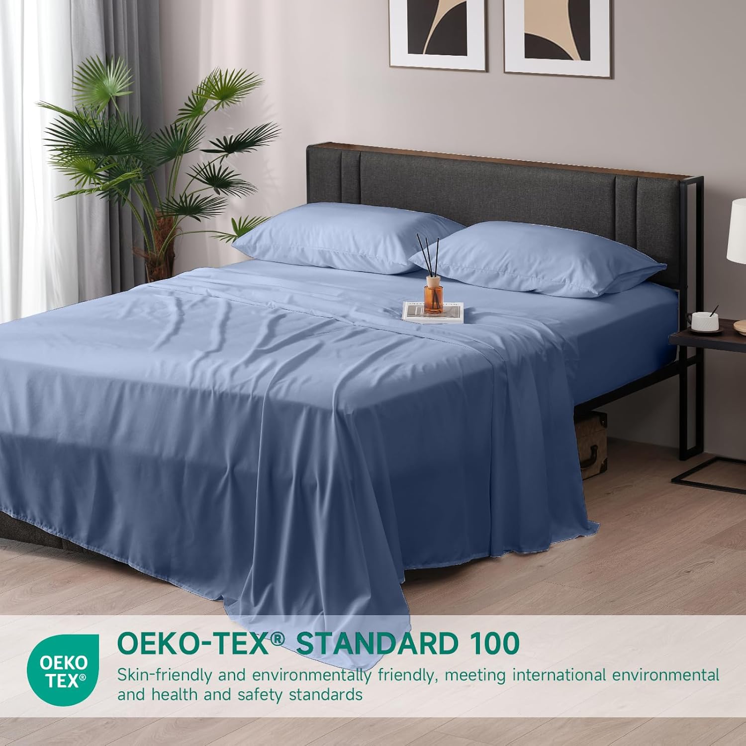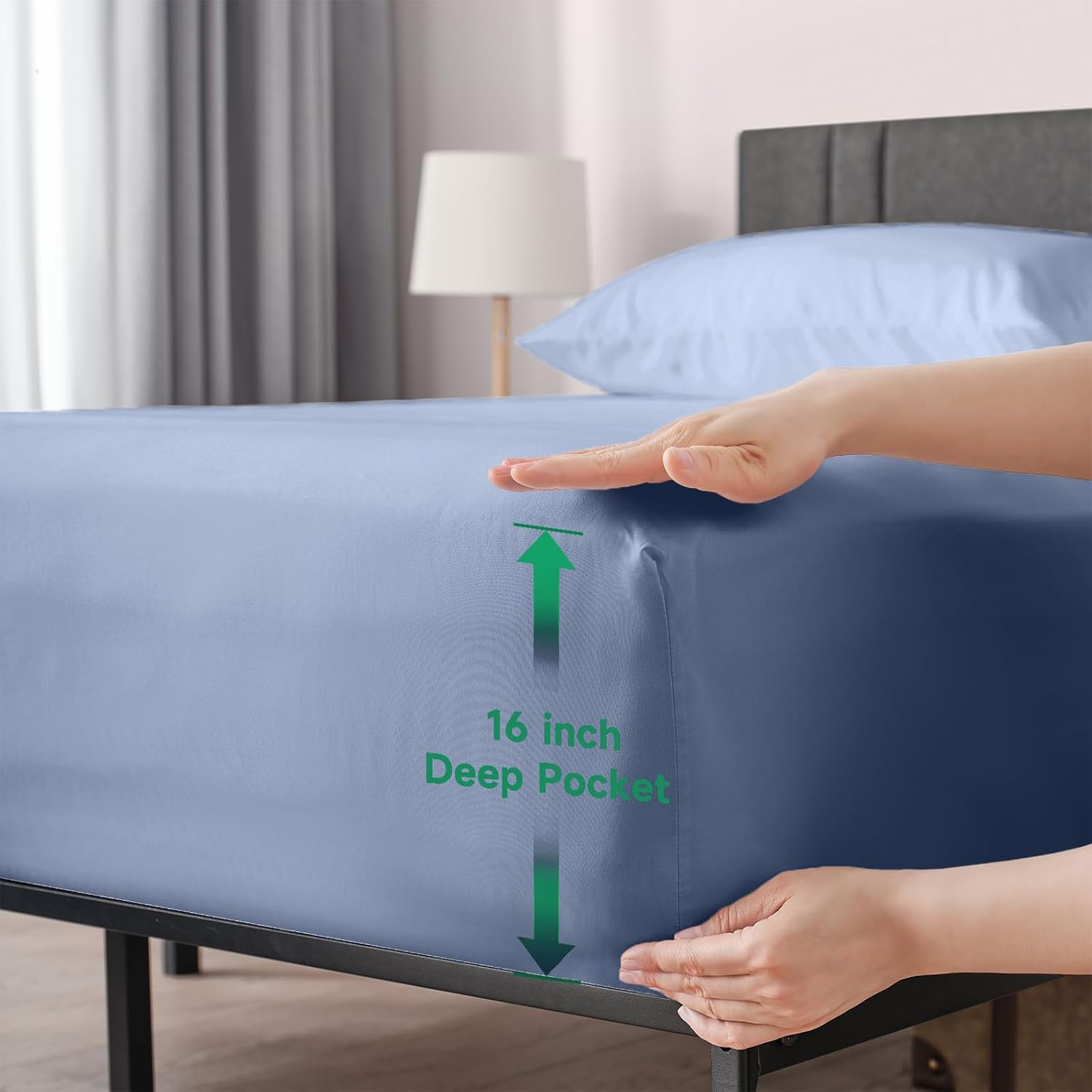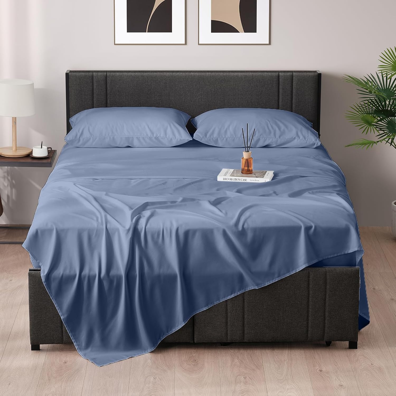 Z-hom Luxury Hotel Bedding, 4 Piece Full Size Bed Sheets & Pillowcases, Upgraded & Wrinkle Free, Deep Pocket up to 16 inch, Denim Blue